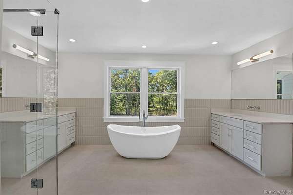 Discover the epitome of modern elegance at 95 North Summit Boulevard-a newly built architectural retreat nestled on over 2 acres of manicured, park-like grounds. This private estate offers the perfect fusion of tranquility, space, and high-end design, located just minutes from the heart of Westhampton Beach. Boasting 4,500 square feet of thoughtfully designed living space above grade with 5 bedrooms and 5.5 bathrooms, this expansive home also features a 2,000-square-foot unfinished basement and an additional 500-square-foot bonus area above the garage-directly accessible from the primary suite. This versatile space is ideal for a future gym, home office, or private studio. Inside, the layout has been curated for both comfort and function, featuring multiple en suite bedrooms, each with generous closet space and spa-inspired baths. The primary suite serves as a true sanctuary, complete with dual walk-in closets, a luxuriously appointed bathroom, and private access to the flexible bonus area. An open-concept main level welcomes you with a grand foyer, flowing seamlessly into spacious living and dining areas. The chef's kitchen is a culinary dream, outfitted with premium Bosch appliances, a Sharp microwave, and XO wine and beverage coolers. For added convenience, the home includes dual laundry stations with LG and Samsung washers and dryers on each floor. Step outside into your own resort-style backyard, featuring a heated gunite pool and surrounded by a custom mahogany deck that transitions to a generous bluestone patio. A dreamy walkway leads to the welcoming front entrance, while a pickleball sport court and three-car garage add to the impressive amenities. Located in a serene, tree-lined enclave, this property offers an unrivaled sense of privacy while remaining just a short drive from the boutiques, dining, and pristine beaches of Westhampton's vibrant Main Street. Experience elevated Hamptons living-where every detail is designed for luxurious comfort and effortless entertaining