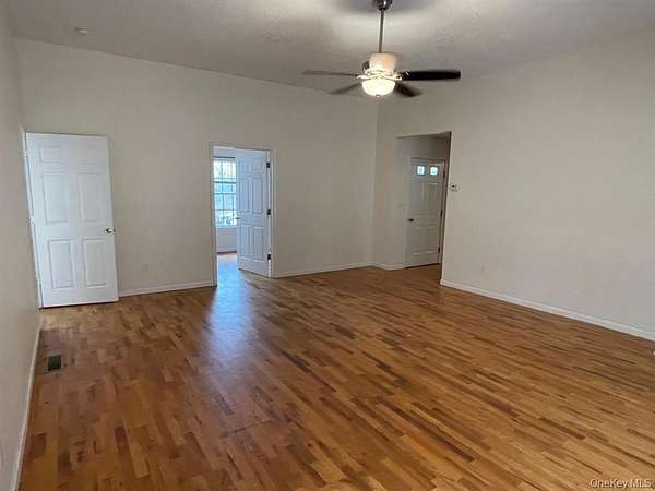 Terrific 3 bedroom, 2 1/2 bath ranch in Minisink Valley School District! Built in 2018, hardwood floors throughout, very spacious. Private & quiet setting set back from road (owner lives in main house in front up front). Two of the bedrooms have full baths (and one with a walk-in closet). Half bath off living room. Washer and dryer in the other primary bedroom (along with a separate outside entrance). Galley kitchen includes gas range, microwave and dishwasher. Pets allowed (within reason). Propane heat. Landlord covers garbage, lawn, snow. Tenant responsible for electric, heat, and cable/internet, if so desired. No basement access, which includes lower-level garage (owner storage). Just a few minutes off I-84 for easy commuting. Easy access to Route 84. Application via RentSpree link ($20 per applicant) -- credit of 620 or better preferred, along with recent pay stubs and references, including current employer, and current/most recent landlord. Use this link -- . . . tenant One month security deposit also required.