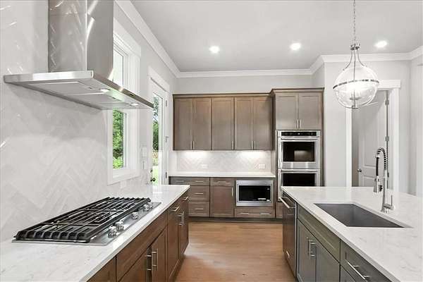 - Dishwasher, Disposal, Double Oven, Electric Oven, Gas Cooktop, Gas Water Heater, Microwave, Range Hood