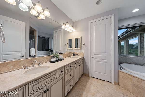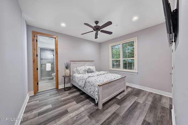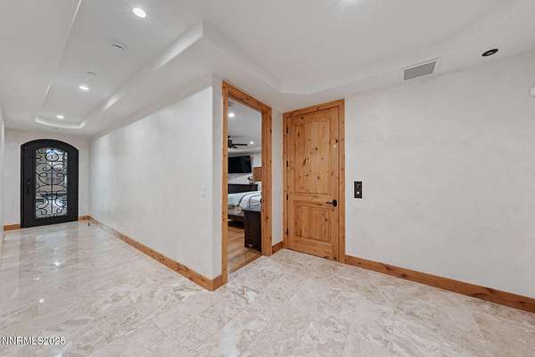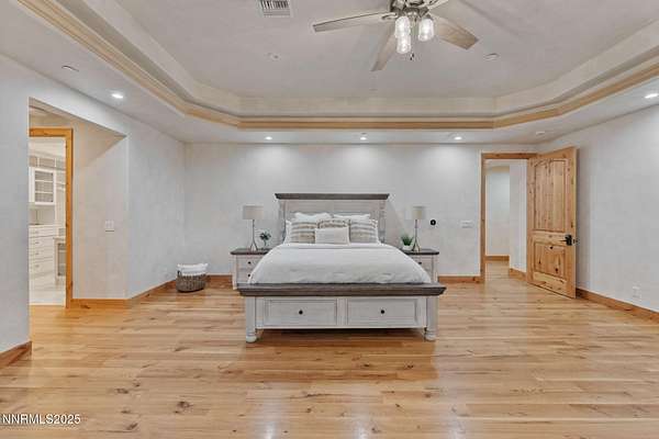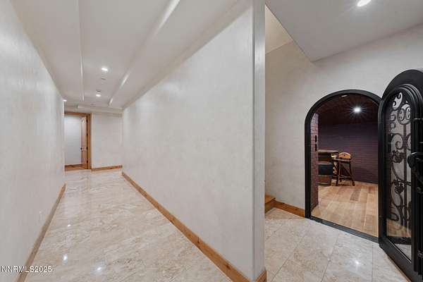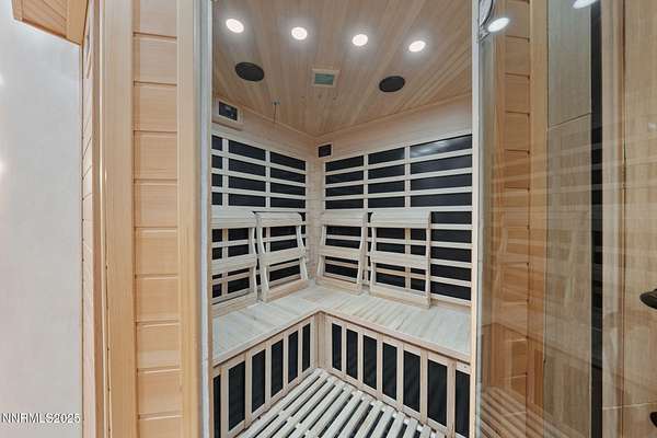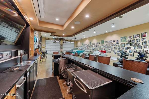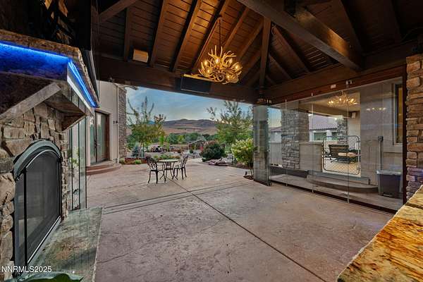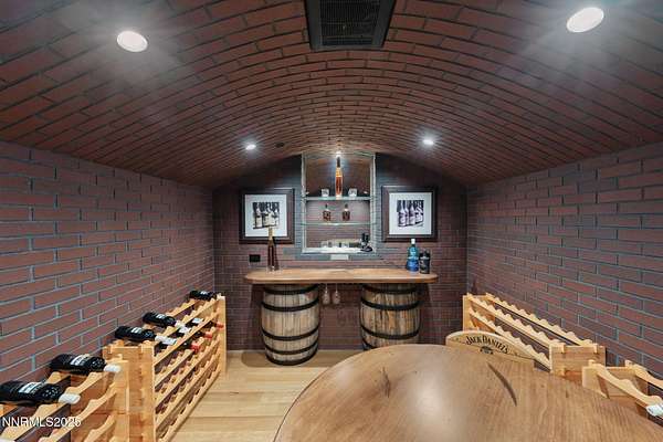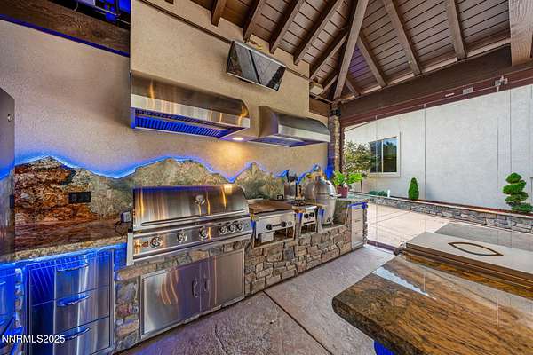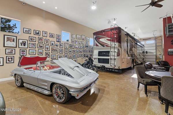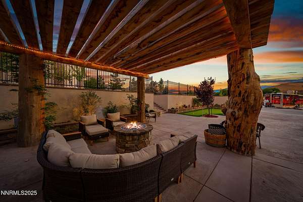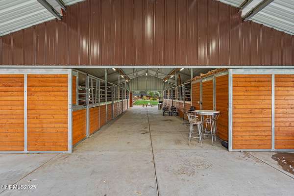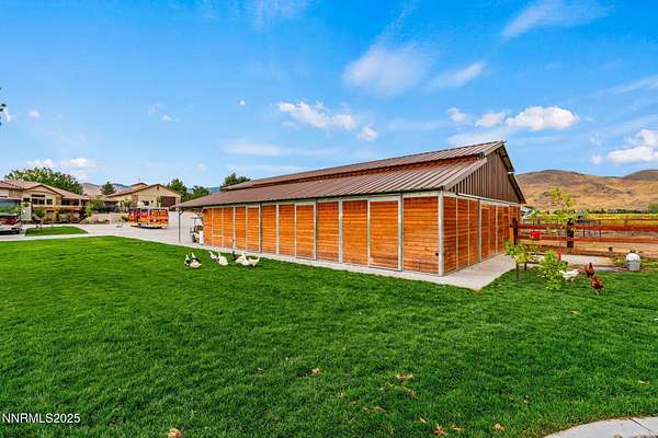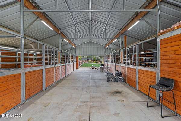 Welcome to a one-of-a-kind Nevada estate where luxury knows no limits and every day feels like a five-star vacation. Just minutes from Reno, Carson City, and Lake Tahoe, this unmatched property blends the serenity of a private ranch with the excitement of a world-class resort-set against a backdrop of Sierra Nevada mountain views and tax-friendly living. At the heart of this retreat is a year-round indoor pool and spa pavilion. Retractable nano doors open the space to a rustic log pergola, fire pit, and private putting green, creating seamless indoor-outdoor living. A fully equipped poolside bar and attached guest suite (complete with sauna) make this space ideal for hosting unforgettable gatherings, all managed from the palm of your hand with smart-home controls. Car enthusiasts and entertainers alike will be captivated by the 4,000 sq ft detached drive-through garage with three 14' doors and 16' ceilings, designed to showcase luxury vehicles, boats, RVs, and the largest toys. This ultimate hangout also features a commercial bar, pool table, shuffleboard, and private guest quarters. This space has been fully automated with surround sound and smart-home technology, perfect for catching the big game or hosting private car shows in your own backyard. In addition to this show-stopping space, the main home also includes a 1,328 sq ft attached garage, bringing the total garage space to an impressive 5,328 sq ft, ample room for every vehicle, toy, and tool imaginable. The outdoor kitchen is a culinary masterpiece, surrounded by glass nano doors and equipped with a pizza oven, smoker, wine fridge, multiple grills, refrigerators, freezer, ice makers, and a custom backlit granite mountain range backsplash. The seamless indoor-outdoor design, paired with infrared heaters and a cozy fireplace, provides year-round comfort and functionality. The main residence features a breathtaking great room with soaring vaulted ceilings, multiple floor-to-ceiling hand-chiseled stone fireplaces, warm hardwood floors, and panoramic views of the Sierra Nevadas. With seven bedrooms-six offering en-suite baths, private fireplaces, and private balconies-every guest enjoys privacy and comfort. The lavish primary suite boasts a balcony overlooking the pool, dual closets (one with a behind-the-mirror hidden safe), and a spa-inspired bathroom. An elevator adds convenient access to all levels of the home for every guest. The fully fenced grounds include irrigated pastures, a breathtaking pond with water wheel, seven-stall equestrian barn with tack room, chicken coop, garden boxes, and four RV hookups with full utilities plus dedicated bathrooms. The park-like landscape lighting, controlled by timers, adds a magical glow throughout the property and an additional 6.5 acre-feet of water rights are included, providing exceptional value and future flexibility for irrigation and property use. This unbeatable location feels like peaceful retreat but is just outside of town. Just 13 minutes to the Reno-Tahoe Airport, 30 minutes to the gorgeous shores of Lake Tahoe, and 21 minutes to the nearest ski resort. Enjoy everything the Sierra Nevada Mountains have to offer with direct ride-out access for horses and off-road adventures, no need to get the trailer, just saddle up and go. This isn't just a home-it's an all-inclusive lifestyle. A sanctuary of recreation, relaxation, and endless possibilities, nestled in one of the most beautiful and accessible regions in the West.