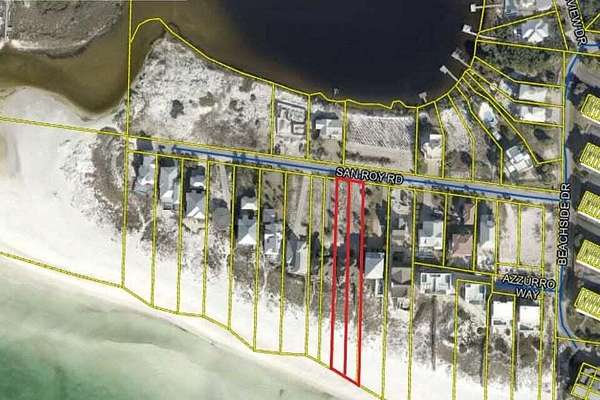 Nestled in the heart of Seagrove Beach, this exceptional oversized Gulf-front lot offers a rare opportunity to craft the ultimate coastal retreat. This property is part of two parcels available for purchase, providing an impressive combined 60 ft of Gulf frontage by 510 feet deep lot and private beach extending to the mean high water line.(Adjoining lot MLS #977129) Positioned on the exclusive San Roy Road, a serene dead-end street, uniquely bordered by the breathtaking turquoise waters of the Gulf to the south and the tranquil Eastern Lake to the north.This rare positioning presents the best of both worlds with panoramic views of the Gulf's shimmering waters and the scenic beauty of Eastern Lake. Located south of 30A, this property is ideally situated in a quiet residential neighborhood, close to all the renowned communities of 30A with Seaside to the west and Alys Beach and Rosemary Beach to the east with the finest dining, specialty eateries and boutique shopping and the new Greenway Station is nearby featuring local favorites like Pecan Jack's Ice Creamery, the Salty Butcher, Wild Olives, and more. Envision your dream home on this expansive lot, which offers ample space for a custom build that meets current county building requirements of one parking space per 900 sq ft, there's plenty of room for a spacious home and necessary parking. For inspiration, a home two doors down built in 2024 on a 60' x 331' lot boasts over 9,807 sq ft of heated and cooled space, showcasing the possibilities for luxury living. Note the position on the beach of the homes to the east and west allow for expanded views down the coastline.This unique lot also ensures privacy and tranquility, with the nearest public beach accesses at either end of the road. Whether you dream of a generational beach retreat or a high-income-producing investment property, this lot offers the flexibility to realize your vision. Currently, the property includes a 3-bedroom, 2-bathroom 2,145 sq ft town-home, perfect for use as a beach getaway or short-term rental to generate revenue while you design your new home. The neighboring parcel also offers a 3-bedroom, 3-bathroom, 1,500 sq ft townhome, providing further accommodation options.(Both properties priced for beachfront lot value only). Please note that the seller requires both parcels to be under contract with a simultaneous closing. Seize this unparalleled opportunity to create your dream home. Whether for personal enjoyment or investment, this Gulf-front lot is poised to become a crowning jewel in your real estate portfolio.