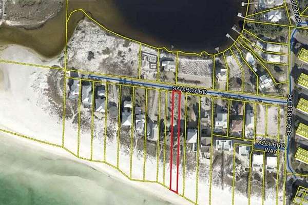 At Hwy 30A and Lakewood Drive, turn south on Lakewood Drive and take another right at the 3 way stop sign. Yield left and continue straight. At San Roy turn right and the lot will be on your left (beachfront). This lot and the lot next door which are both for sale, currently have a townhome on the property.