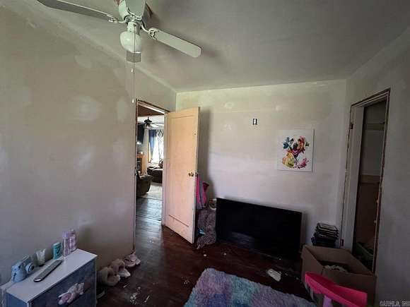 Est $511/mo3 Bedroom, 1 bath home with open floor plan is just waiting on you to update and make it fit your taste. Home features a cozy kitchen, large primary bedroom with its own porch, and a dedicated laundry. Original hardwood flooring can be found in several rooms. This 4.17 +/-acres with highway frontage has a level field ready for livestock.