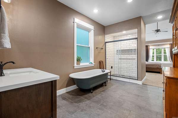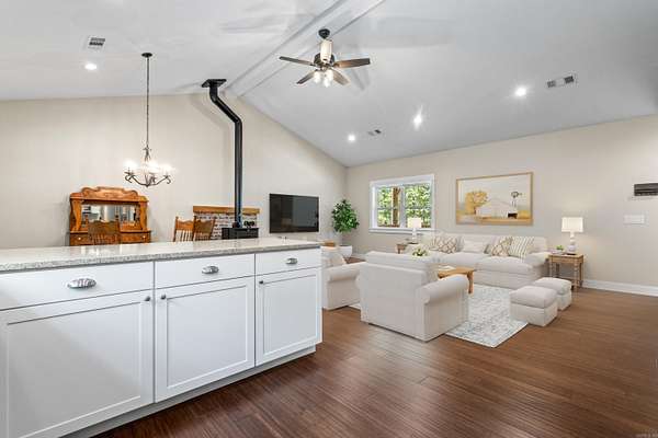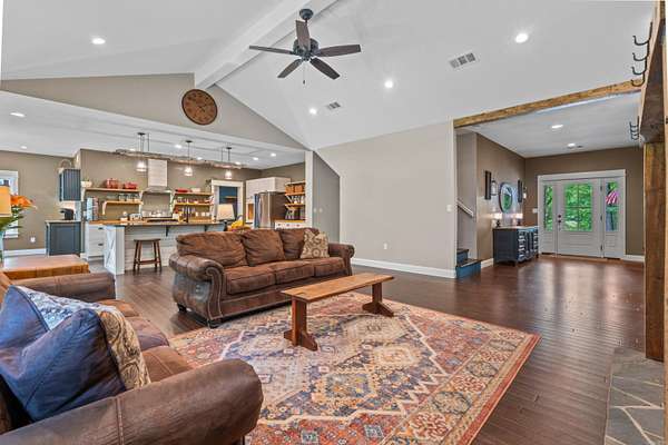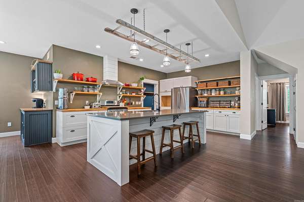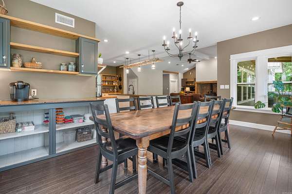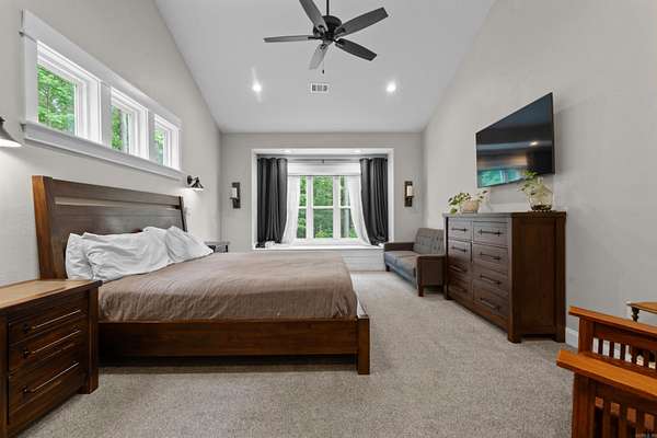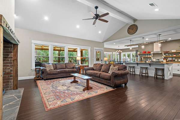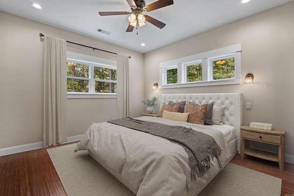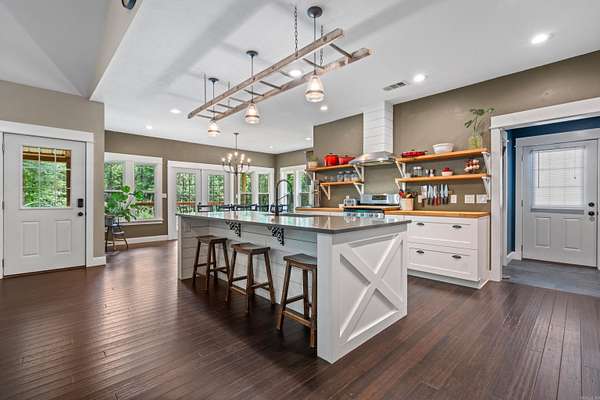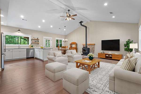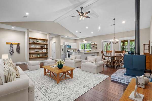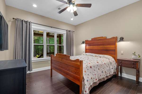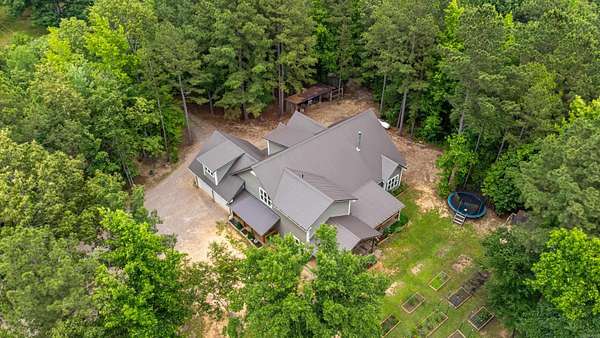 Welcome to 95 Thunder Mountain--a stunning luxury homestead tucked into 7.9 acres of peaceful Caddo Gap wilderness. This custom-built estate includes a beautifully crafted main home and a high-end 2-bedroom guest house, both topped with 50-year metal roofs and designed for energy efficiency. Inside the main home, bamboo floors, vaulted ceilings, and a wood-burning stove set the tone for warmth and charm. Floor-to-ceiling windows bring the outdoors in, flooding the open-concept living, dining, and modern farmhouse kitchen with light. The main level features a spacious primary suite with a clawfoot tub, vintage-style vanity, and walk-in closet, plus a second bedroom for kids or guests. Upstairs offers three more bedrooms, a full bathroom, and a bonus space perfect for a playroom, media room, craft room, or office. It's perfect for large families! The guest house is equally impressive--open, airy, and ideal for multigenerational living or short-term rental income. All of this is just minutes from the Caddo River, Ouachita National Forest, and crystal mines; this is Arkansas luxury homesteading at its finest.