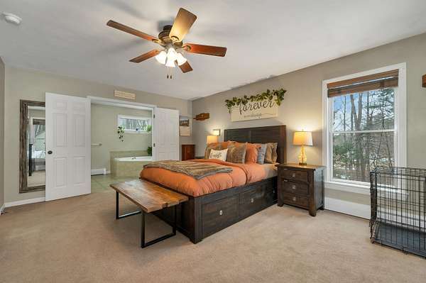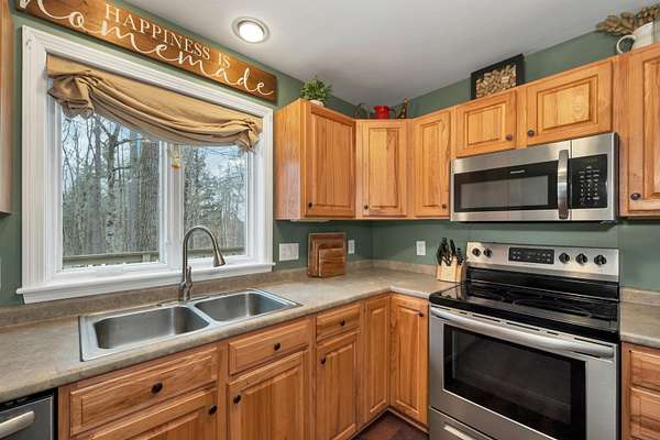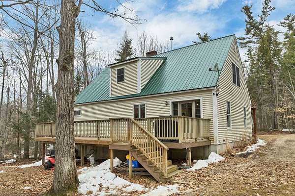 Welcome to this well-maintained 3-bedroom, 2.5-bath Cape-style home set on a beautiful 4.41-acre lot in a peaceful Campton setting. Surrounded by a mix of open and wooded land, this property offers a sense of privacy while still being conveniently located to local amenities and recreation. The main level features a spacious living room, a dedicated dining area, and a functional kitchen that flows nicely for everyday living and entertaining. A primary suite on the main floor provides comfort and convenience, along with a nearby half bath for guests. Upstairs, you’ll find two generously sized bedrooms and a full bath, offering flexibility for family, visitors, or a home office. Enjoy outdoor living with a welcoming front farmer’s porch and a large rear deck, perfect for relaxing, entertaining, or taking in the surrounding natural setting. A new septic system installed in 2022 and a new metal roof in 2020 add peace of mind for years to come. Located just minutes from downtown Plymouth, this home offers easy access to shopping, dining, healthcare, and Plymouth State University. The location also places you close to the best of the region, including Waterville Valley and Loon Mountain, as well as hiking trails, lakes, and year-round outdoor recreation throughout the White Mountains. Whether you're looking for a full-time residence or a getaway in the mountains, this property offers the space, setting, and location to enjoy all that Central New Hampshire has to offer.