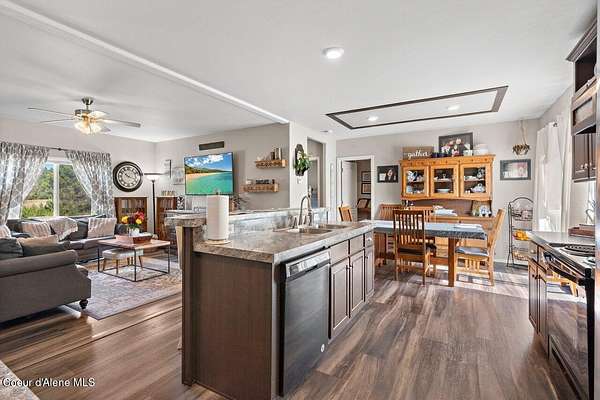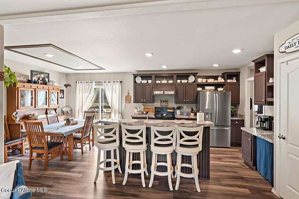 Est $7,690/moLooking for a property with 2 homes and plenty of room for animals? This is it!! The main living space is a 2001 3bd, 2ba 3200 square feet home with a basement. The second living space is a 2019 3bd, 2ba double wide manufactured home with a large kitchen island and open concept living area. Outside there are 2 large barns, a spacious shop and 16.5 flat acres with partial fencing. Plenty of room for livestock, horses, or hobby farm projects. Move-in ready and ideal for multi-family living or a small ranch operation.