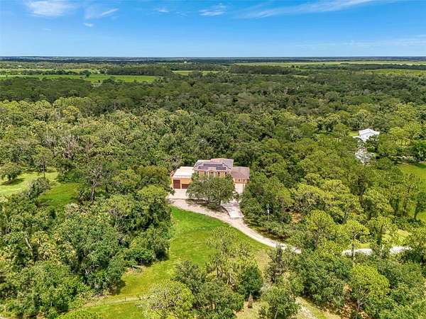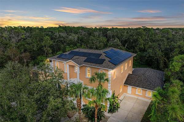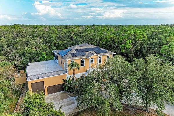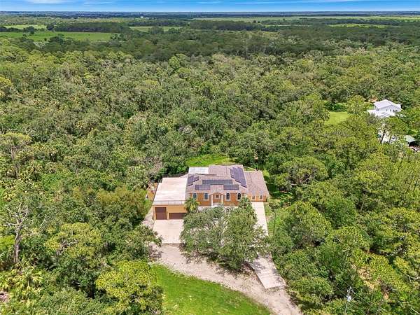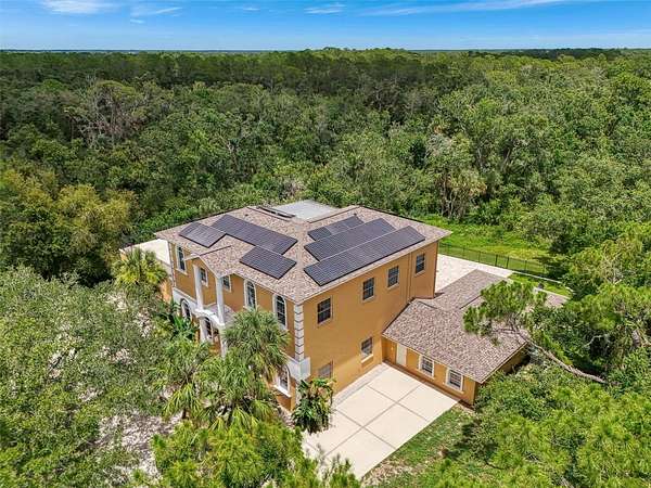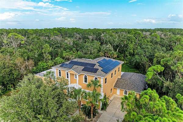 Rare opportunity to own a one-of-a-kind estate offering over 5,700 sq. ft. of living space on more than 8 private, wooded acres--just minutes from town, and only 1-mile to Lorraine & Fruitville Rd. NO HOA & NO Deed Restrictions! Hi & Dry NO FLOOD INSURANCE, NO WATER BILL, BARELY AN ELEC BILL with OWNED SOLAR PANELS.