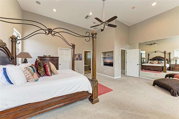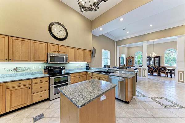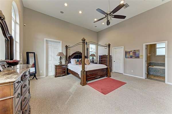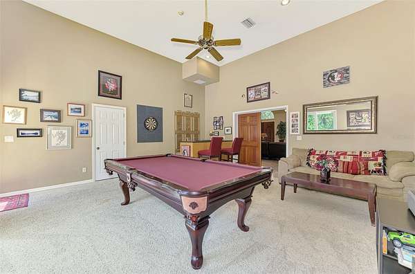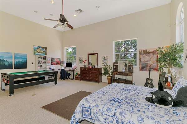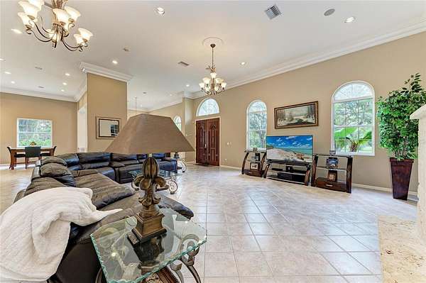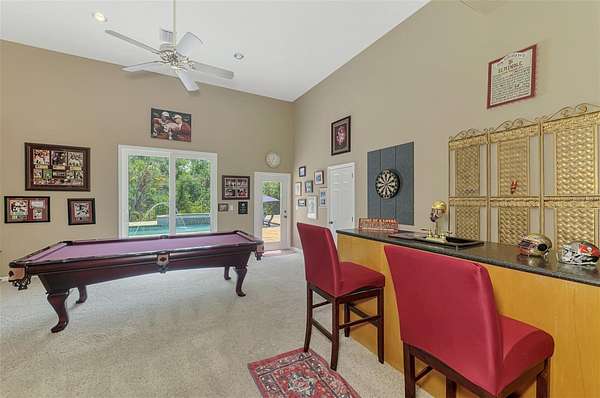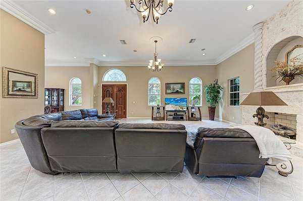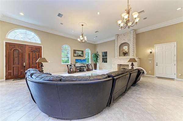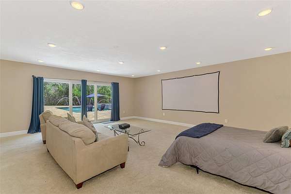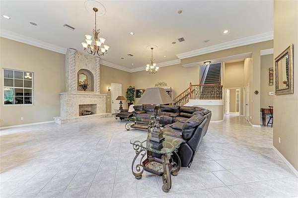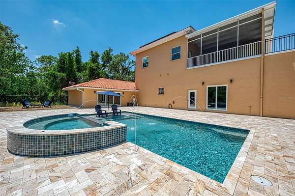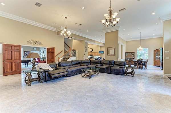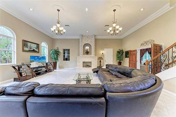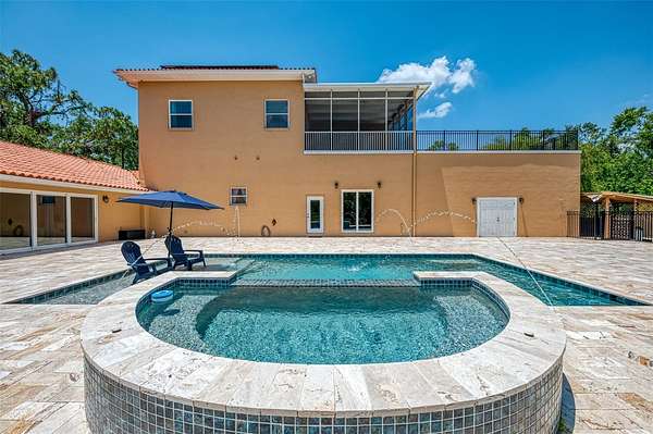 This custom 2-story home features 4 Spacious Bedrooms, could easily be 6-BEDROOMS, with the 2-BONUS ROOMS, or divide the 24-ft Guest Bedroom in two. There is ALSO an attached IN-LAW SUITE--ideal for MULTI-GENERATIONAL LIVING. Soaring 15-ft CEILINGS on BOTH FLOORS create a GRAND & EXPANSIVE feel throughout. The GREAT ROOM centers around a stunning CORAL STONE FIREPLACE and flows into a large entertainment room with wet bar and views of the pool. There is a HUGE 1500SQFT ROOFTOP OUTDOOR CONCRETE SUN-DECK FOR ALL YOUR ENTERTAINMENT NEEDS, along with a COVERED, SCREENED, 2nd-Flr BACK PORCH to kick back, sip your drinks and enjoy your PRIVATE OASIS!