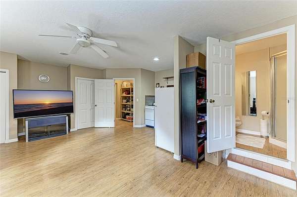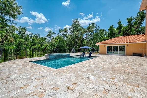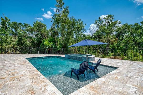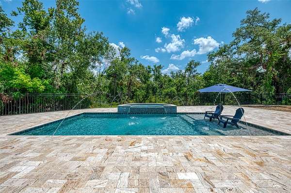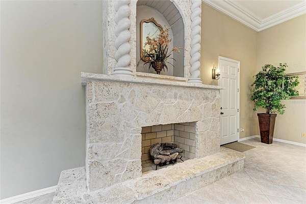 Enjoy the outdoors in your resort-style TRAVERTINE POOL & SPA, complete with ZERO-ENTRY SUN-SHELF, Firepit Area, and plumbing for an outdoor pool bath & shower. The attached 6-CAR GARAGE or RV BAY offers reinforced concrete construction, two 50-amp plugs, and doubles as a Hurricane Shelter.