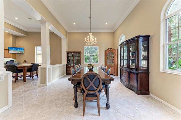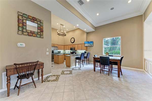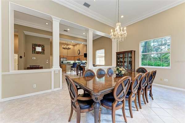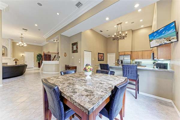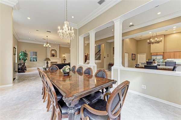 - Built-In Features, Ceiling Fans(s), Coffered Ceiling(s), Crown Molding, Dry Bar, Eat-In Kitchen, High Ceilings, Living Room/Dining Room Combo, Open Floorplan