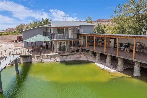 Est $3,432/moOne of a kind property situated on 11 acres with its own private pond, offering unmatched seclusion and tranquility. A private driveway leads to the residence where you can take in fantastic mountain views. The basement is designed with a second kitchen and private entrance, providing flexible living arrangements and guest accommodations. A large covered patio/deck extends the living space outside, complete with an outdoor kitchen while overlooking the pond. The expansive acreage provides plenty of room for toys, potential outbuildings or simply enjoying the peace of wide open space.