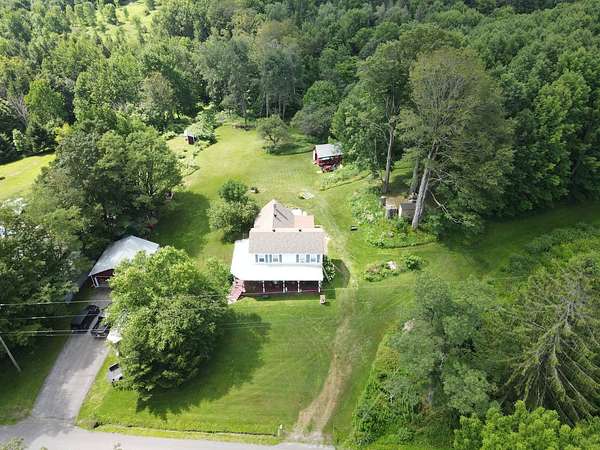 Circa 1900 home on nearly five and half acres with recent updates, just waiting for you to start enjoying life in the country! The welcoming wraparound front porch has entrances to the house on two sides. The front door gives access to the living room area, with a pellet stove for efficient heating and plenty of windows providing abundant natural light. The side door enters into the dining area, which is currently utilized as a workspace, and shares a large dry bar with mini fridge for entertaining. The plumbing is in place to easily give the bar access to water/sink. The eat-in kitchen with pantry has a newer refrigerator and oven/range. Off the kitchen is a first floor full bath, and laundry/mudroom which provides access to the back deck. The second floor offers a large master bedroom, full bath, sizeable second bedroom, and a third room for storage that could serve as a playroom. Outside you will appreciate the detached two car garage that is fully insulated with spray foam and has a second pellet stove, back deck overlooking the manicured grounds, 14X18 shed/workshop, stone fireplace, groomed trails throughout, and the small stream that meanders through the property. All of this and Fios high speed internet as a bonus. The wooded portion of the property provides excellent hunting opportunities, with an elevated stand and ground blind in place. Located less than 20 minutes from all the historic Village of Cooperstown has to offer, and 5 minutes from Richfield Springs for the daily necessities, so book your showing today! MOTIVATED SELLERS, willing to discuss some owner financing options.