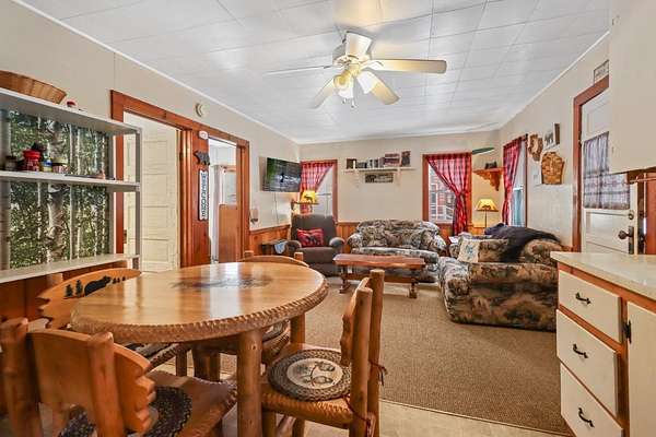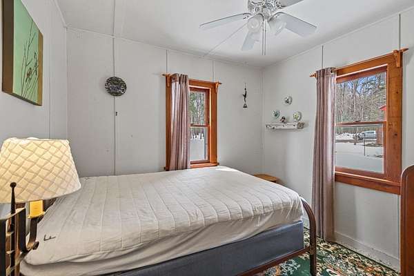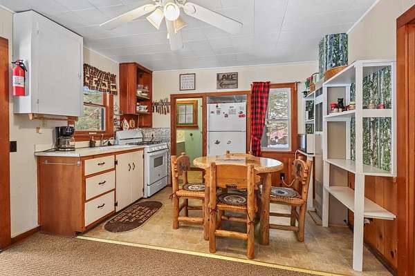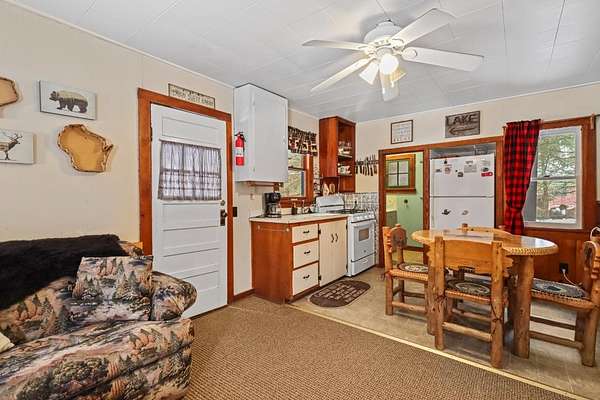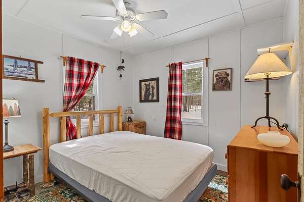 Charming seasonal cottage on the shores of Big Stone Lake on the Three Lakes Chain of Lakes. This warm and welcoming getaway offers two bedrooms, one bath, and a lakeside screened porch-perfect for morning coffee and evening cocktails. Outside, enjoy neat, well-kept grounds with a firepit, two permanent piers, and a sandy swimming beach. With 3.76 shared acres, 233' of shared frontage, and only five other units, you will find a rare balance of privacy and community. Low HOA fees and rental history provide the option to offset ownership costs. The location is hard to beat: a golf course across the road, shopping and restaurants nearby and the Nicolet National Forest is just minutes away. Make this your easy-up-north escape-dock your boat, swim the sandy beach, explore the entire Three Lakes Chain, and start making summer memories from day one.