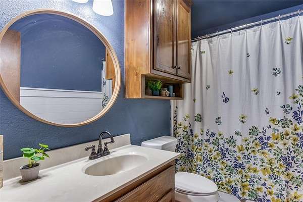 From Ric Williamson Memorial Hwy, continue approximately 5 miles and then turn right onto FM 920 N Peaster Hwy. Go 2.4 miles and then turn right onto Johnson Bend Road. After 0.7 miles, home will be o your left with sign in yard.