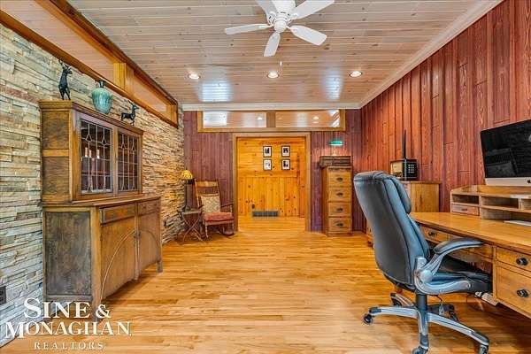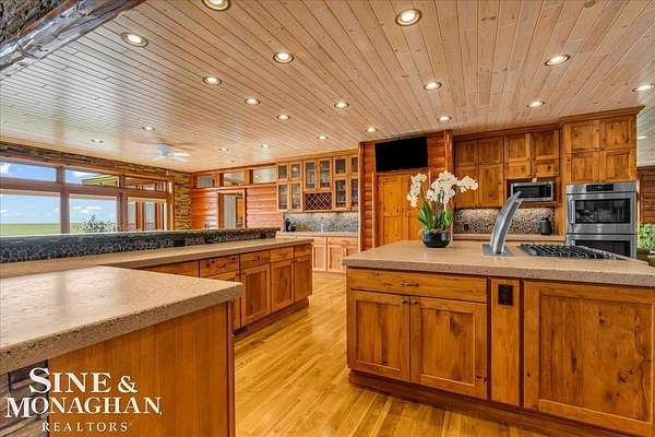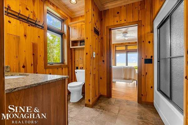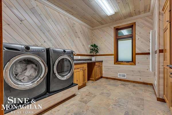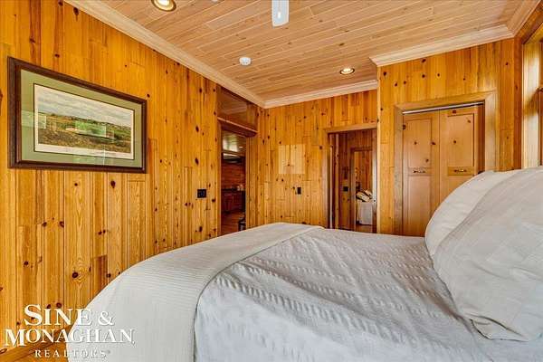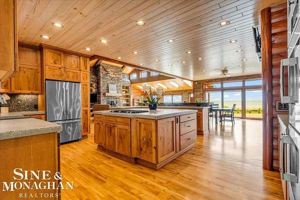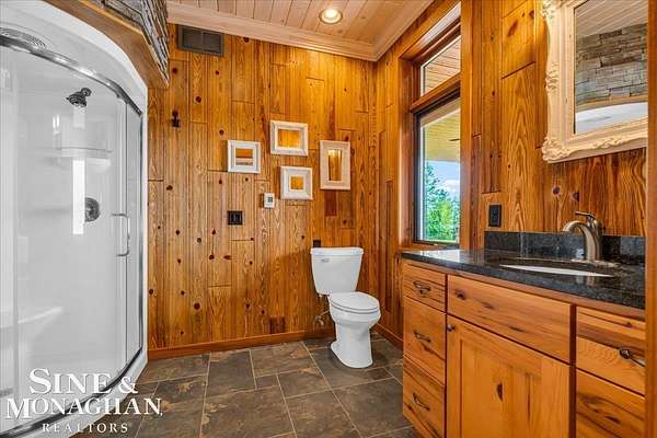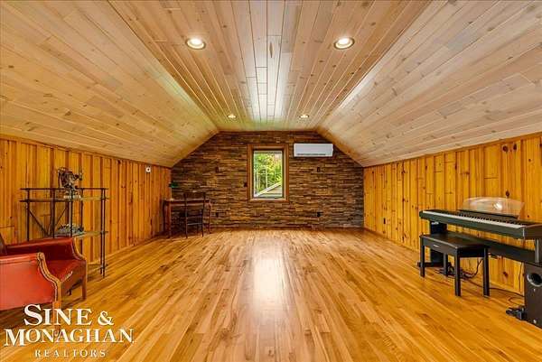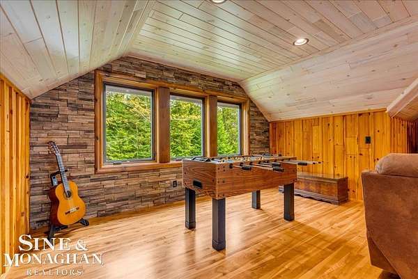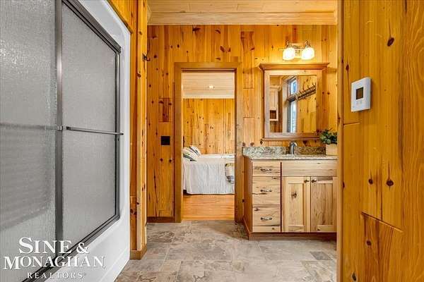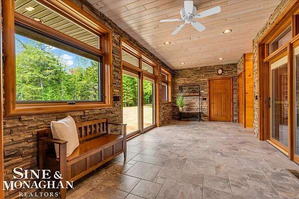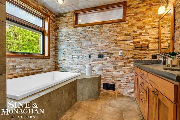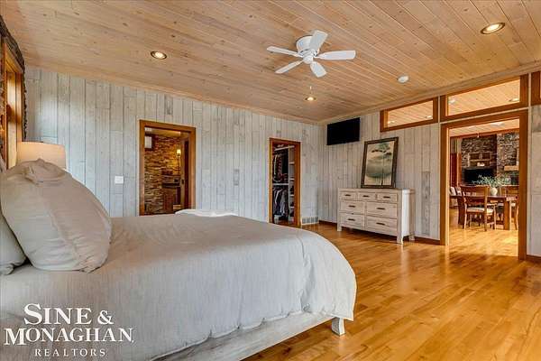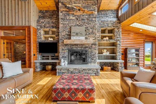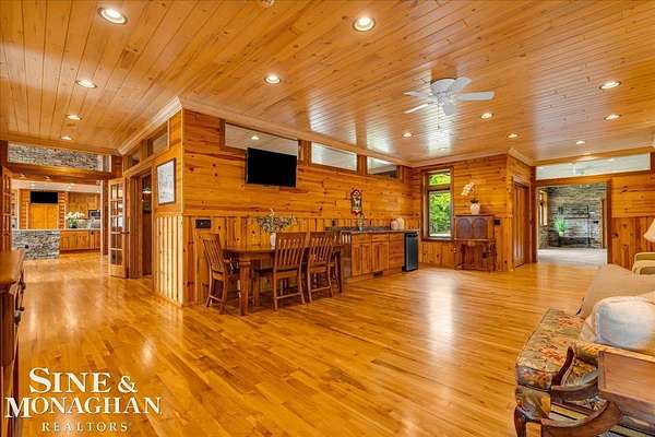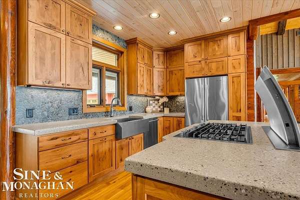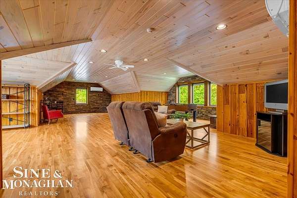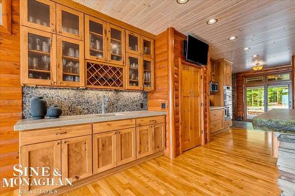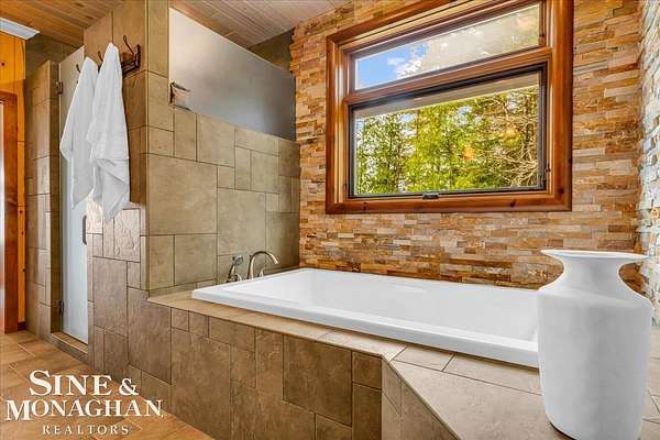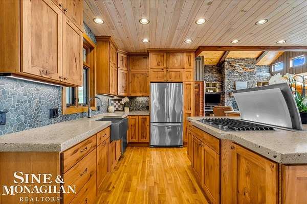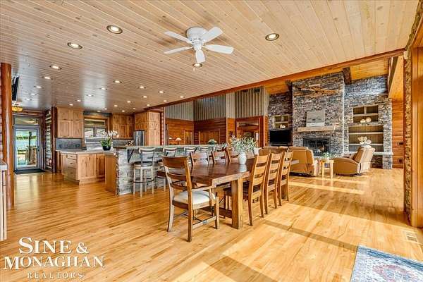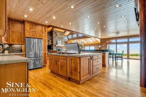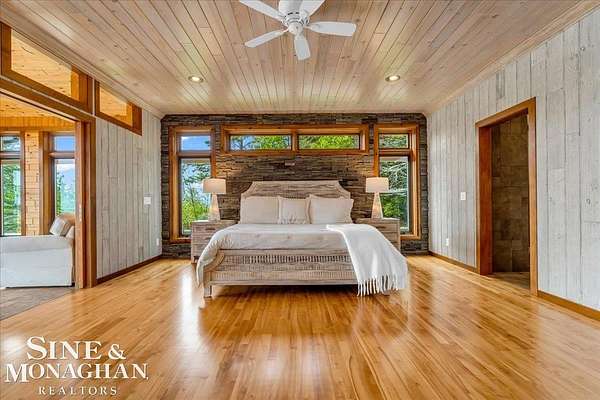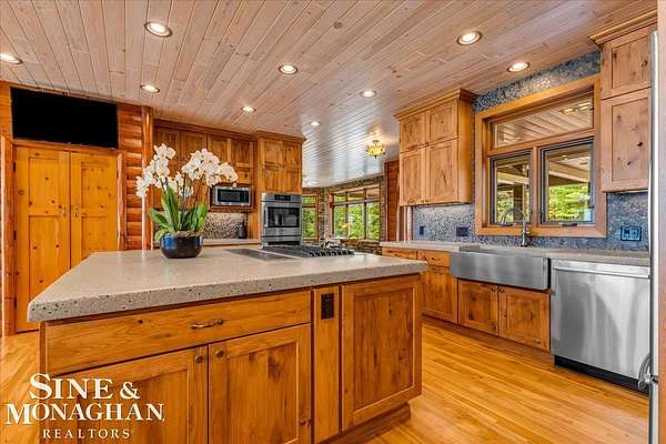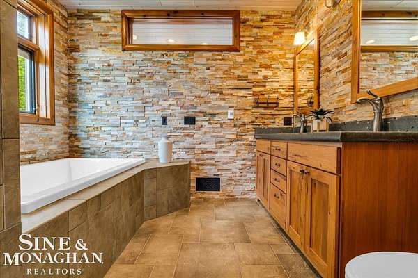 Welcome to 950 N Lake Huron Shores Drive, a rare and extraordinary custom lakefront estate offering 6750 sq. ft. of refined rustic elegance; on 10 wooded acres with 250 feet of private Lake Huron frontage. This 4-bedroom, 4.5-bath ranch home showcases exceptional craftsmanship with reclaimed wood details, birch floors, and Michigan blue pine throughout. Designed for both comfort and sustainability, the home features geothermal heating, an ERV air system, dual septic tanks, and a whole-house Generac generator. The gourmet kitchen is equipped with Bosch and JennAir appliances, hickory cabinets, a cooktop, and beach glass exposed concrete countertops, while natural light floods the open-concept living space through Pella windows, heavy-duty sliders, transoms, and a dramatic 2-story fireplace. The private master wing includes a sunroom, jetted tub, oversized shower with high end plumbing fixtures, and expansive walk-in closet. Additional highlights include a guest wing with mini kitchenette and living area, As well as a completely finished flex space with full bathroom and control room over the garage. Not to mention the upgraded exterior such a custom stained concrete wrap around patios, fire pit, dog wash, outdoor shower, and commercial-grade grill area. A 3.5-car finished garage with workspace, epoxy floors and utility sink. A 30x50 heated & cooled pole barn with additional workshop, bathroom, loft, and lean-to for unlimited storage potential and work space. The beautifully landscaped property features a creek, unparalleled beach access, 650 feet of private trails, and the convenience of biking distance to downtown and the Harrisville Harbor. With smart home technology, remote HVAC and security access, expansive sandy beachfront, and panoramic lake views from every room, this energy-efficient home redefines luxury waterfront living in Northern Michigan.