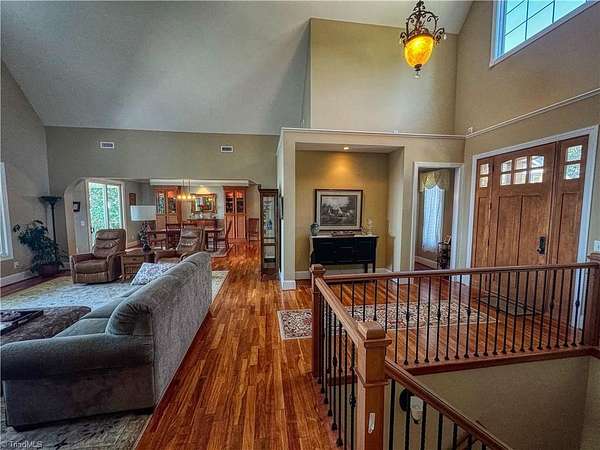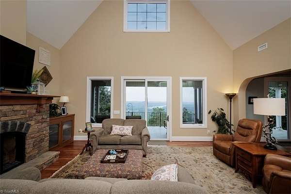 Welcome to 950 Sierra Trace, a one-owner custom home perfectly positioned on the side of High Rock Mountain in The Springs gated community. Every detail--from its poured concrete foundation and engineered floor system to foam-insulated walls--reflects quality construction and thoughtful planning. The home's orientation captures sweeping long-range views of the mountains and Tuckertown Reservoir from nearly every main living space. Step inside to soaring 19-foot vaulted ceilings and hardwood floors (teak family) on the main level, with tile in the baths and laundry. The primary suite offers stunning views, his-and-hers closets, an updated bath, and direct access to the viewing deck--an ideal spot for relaxing evenings. The lower level expands your living space with bamboo flooring, a game room, two bedrooms, two full baths, an office, and a sewing room--both with walk-in closets and potential to serve as additional bedrooms. Vacation feeling 365 days a year! A must see home!
