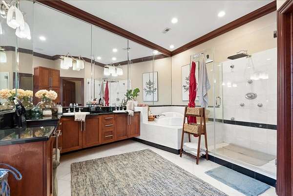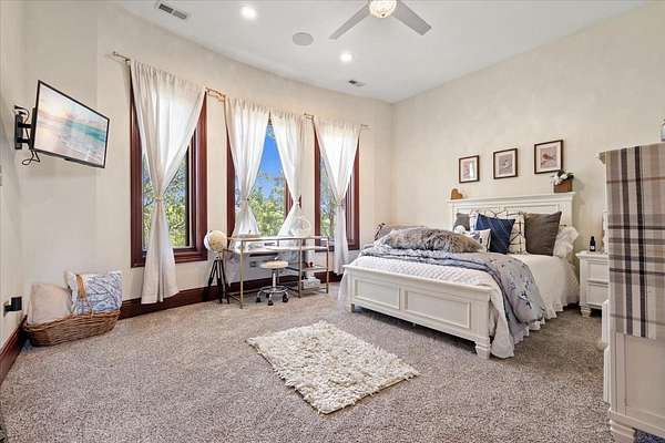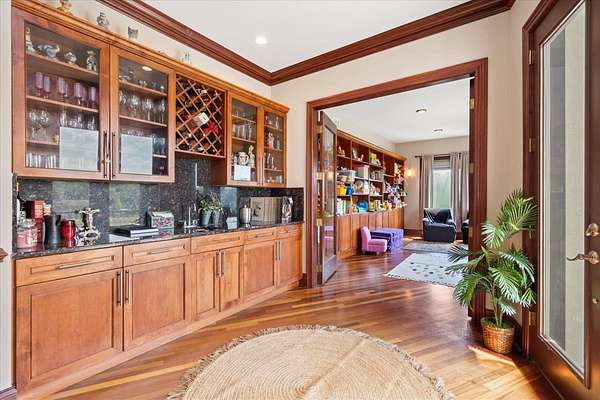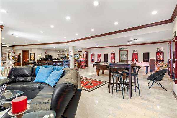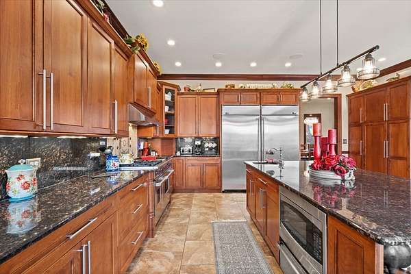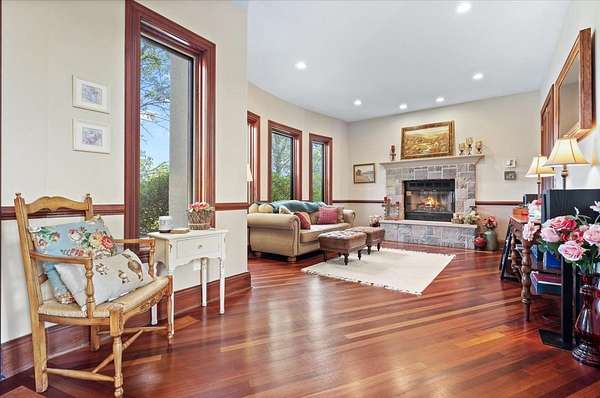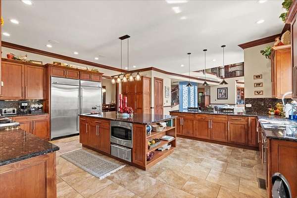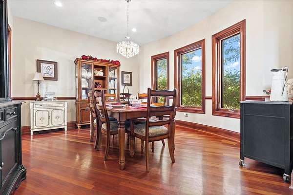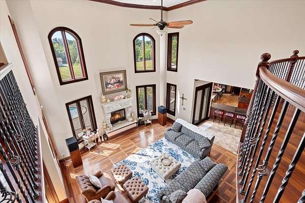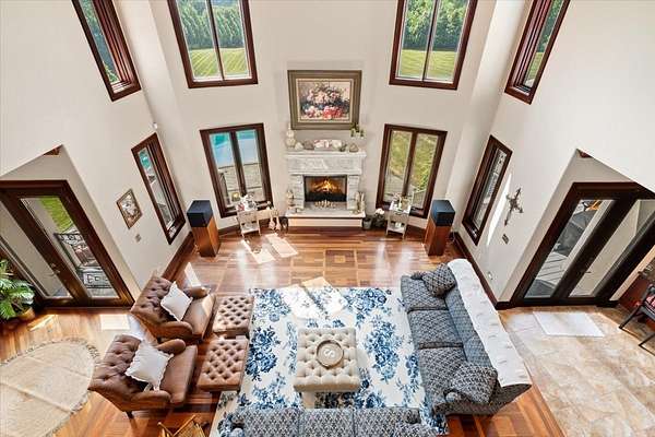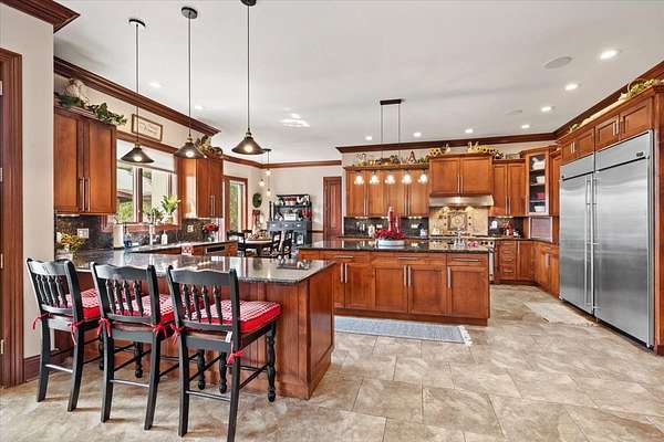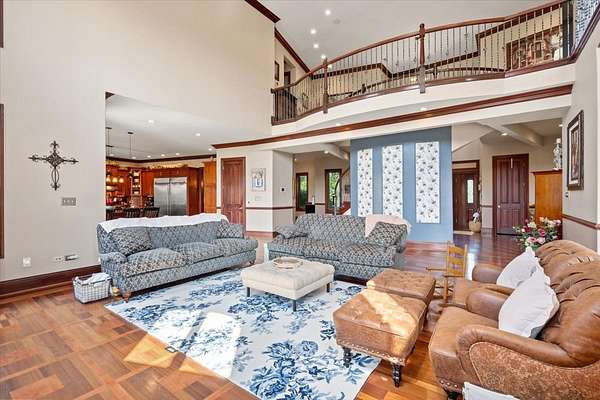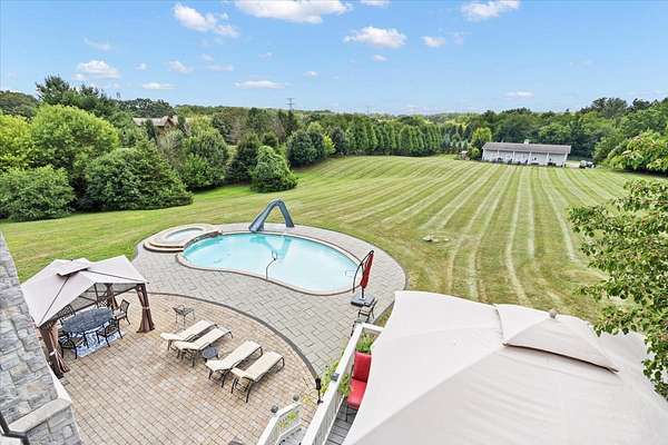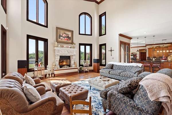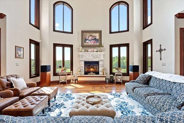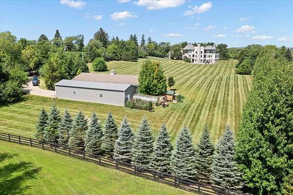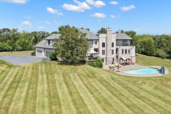 A Private Luxury Estate Like No Other.. Welcome to a world where elegance, comfort, and functionality unite in perfect harmony. Set on 5 picturesque, horse-friendly acres, this extraordinary estate offers 10,625 square feet of beautifully designed living space and every amenity for a truly elevated lifestyle. Beyond the stately gated entry and circular drive, the residence commands attention with its grand facade and manicured grounds. Step inside to soaring 20-foot ceilings, Brazilian Cherry floors, rich millwork, and walls of windows that drench each room in natural light. The great room, anchored by a magnificent marble fireplace, flows effortlessly into the gourmet chef's kitchen-complete with high-end appliances, a generous island, and space for gatherings both large and intimate. The primary suite is a private sanctuary, featuring a balcony with breathtaking views, a spa-like bath with marble and granite finishes, a whirlpool tub, and custom walk-in closets. Four of the bedrooms are appointed with their own en-suite baths, creating a luxurious sense of comfort and privacy for family and guests. The full finished walkout basement is a world of its own designed for leisure, entertainment, and hosting on any scale. Enjoy a fully equipped bar and kitchen, home theater wired for 7.2 surround sound, expansive game area, office/media room, and walkouts to the resort-style pool deck. Heated floors in the kitchen, basement, and garage add year-round comfort, while whole-house audio/video with 16 zones, a 600-amp electrical service, and advanced security with eight hard-wired cameras provide modern luxury and peace of mind. Outdoors, indulge in your private paradise: a sparkling built-in pool with attached spa, multiple lounging and dining areas, and sweeping lawns that stretch to the horizon. Two large outbuildings, including powered barns, offer endless possibilities-from car collections and workshops to equestrian pursuits. This is more than a home-it's a rare blend of luxury, versatility, and privacy, perfectly located just minutes from local conveniences. A property of this caliber comes along once in a lifetime. Schedule your private tour and prepare to be captivated.