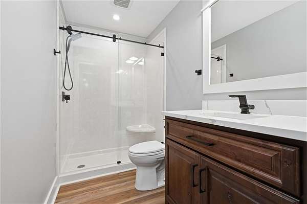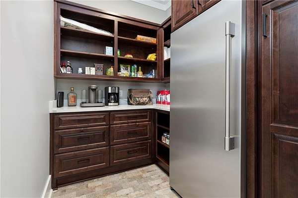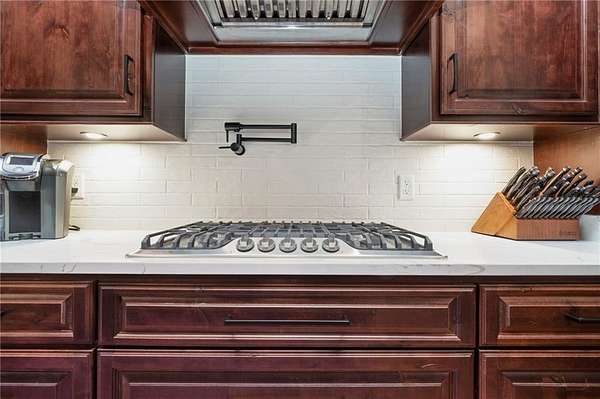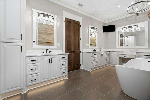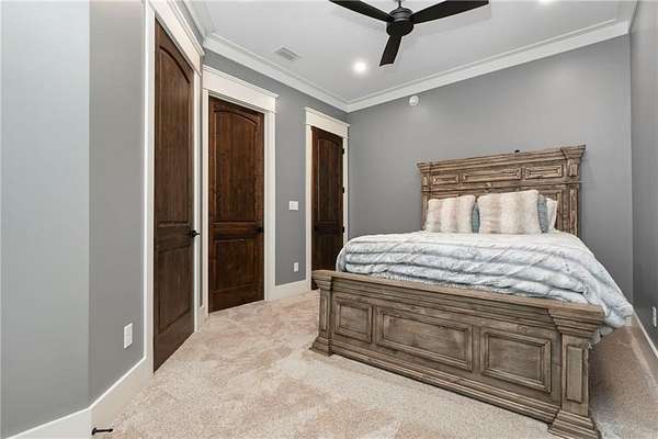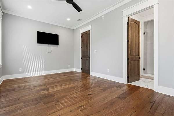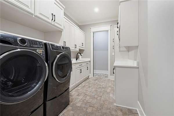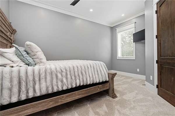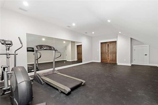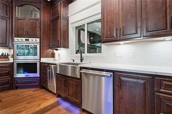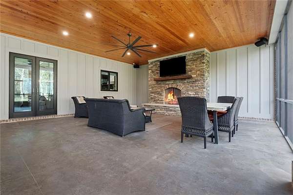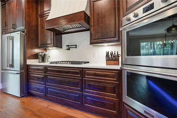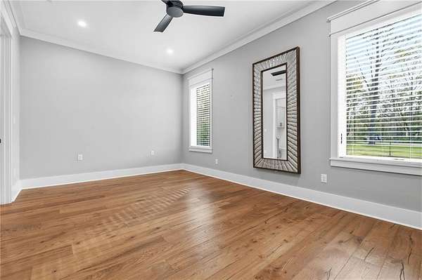 Welcome to 9501 Ben Hamilton Road! A spectacular GOLD-FORTIFIED custom-built home completed in 2023, nestled on 5.5 beautiful acres with a mix of cleared land and wooded privacy, offering an exceptional blend of luxury, comfort, and nature. The main home features 4,557 sq. ft. of heated and cooled living space, with an additional 1,786 sq. ft. heated and cooled garage, creating an incredible amount of functional space for everyday living, storage, hobbies, and entertaining. Designed with both comfort and style in mind, the main level features an open-concept layout connecting the kitchen, living, and dining areas. The chef's kitchen is beautifully appointed with quartz countertops, double ovens, a five-burner gas cooktop, stainless farmhouse sink, drawer microwave, and a spacious walk-in pantry with its own freezer. The family room is anchored by a striking stone wood-burning fireplace with gas starter, framed by custom built-in bookcases. The oversized primary suite is a true retreat, highlighted by a double tray ceiling and a spa-inspired bath with a soaking tub, walk-in shower with multiple shower heads, and a customized walk-in closet. Conveniently tucked nearby for privacy is the well-equipped laundry room featuring Electrolux appliances, cabinetry, and countertop workspace. On the opposite side of the home, two additional bedrooms each offer private en-suite baths and walk-in closets with built-ins. Upstairs, you'll find an oversized rec room, a fourth bedroom currently serving as an exercise room with cushioned flooring, a full bath, dedicated office area, and a walk-up attic providing outstanding storage. The outdoor living spaces are just as impressive. The screened back porch is built for entertaining, featuring a full outdoor kitchen with hibachi grill, Green Egg grill, broiler, wood-burning fireplace with gas starter, and space for TVs. The heated and cooled triple garage includes a third bay with a 14' x 12' door designed to accommodate an RV or boat, plus sewer and power hookups for RV use. Additional features include engineered hardwood flooring and tile throughout, cypress wood accents on tray ceilings in the living room, garage, and back porch, LED lighting in the kitchen and primary suite, three HVAC systems, irrigation system, central shop vac, and a current termite bond that conveys. With GOLD-FORTIFIED construction, new custom craftsmanship, acreage, and high-end details throughout, this is truly a rare find. Listing Broker makes no representation to accuracy of square footage. All updates per the seller(s). Buyer to verify any and all information deemed important for this transaction.