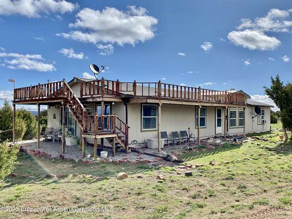 Now offered with 8.469+/- acres at $269,500 or with your choice of additional land options (120ac, 80ac, & 40ac available with the home. Call for pricing or see photos)! This spacious 3 bed, 2 bath home in Greystone allows you to experience cozy evenings by the fireplace or pellet stove, with separate living and family rooms for ultimate relaxation. Wake up to stunning views from your primary bedroom's walkout patio, and take in the 360 degree scenery from the elevated viewing deck. This property also includes a 1,000 gallon cistern, a prepaid water tap to the Greystone Community Water Company (a $13,000 value), a stargazing observatory, RV parking/power, a 4-car garage, and a complete perimeter fence. Plus, the location is known for its trophy elk and deer hunting in Unit 2, and you can ATV or Snowmobile to thousands of acres of BLM nearby! Great vacation and investment group property.