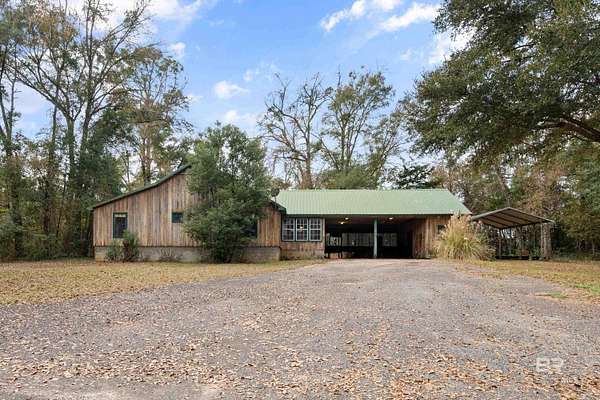 Welcome to this stunning four-bedroom, 2 1/2 bath home nestled on 12.25 acres of serene wooded land in the heart of Fairhope, Alabama. This beautiful property offers a perfect blend of rustic charm and modern comfort, featuring an all-Cypress construction that provides durability and natural beauty. Inside, you will find spacious, well-lit rooms with hardwood floors, a cozy living area with ample space for gatherings, and large windows offering breathtaking views of the surrounding nature. The master suite is a peaceful retreat, complete with a private bath and walk-in closet.Step outside to enjoy the privacy and tranquility of your own wooded oasis, ideal for peaceful walks, outdoor activities, or simply relaxing in nature. With 12.25 acres, you have plenty of room to create your dream outdoor space. Whether you're seeking solitude, space for animals, or a family-friendly retreat, this property offers it all. Situated in a sought-after location in Fairhope, you will enjoy the convenience of town while having the privacy and peace of country living. Buyer to verify all information during due diligence.