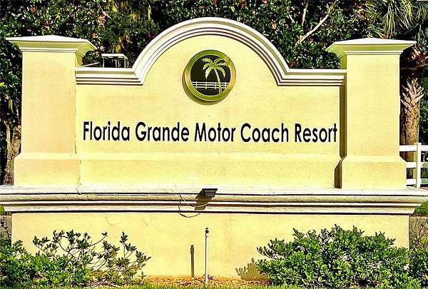 Welcome to Lot 285 in Florida Grande Motor Coach Resort, one of the most spacious developed properties in the community. Situated on a desirable corner lot and spanning an impressive 10,394 square feet, this property offers an extraordinary amount of outdoor space—making it the second largest developed property in the resort and a rare opportunity for motorcoach owners who value room to spread out and enjoy outdoor living.