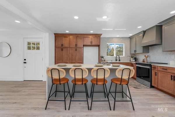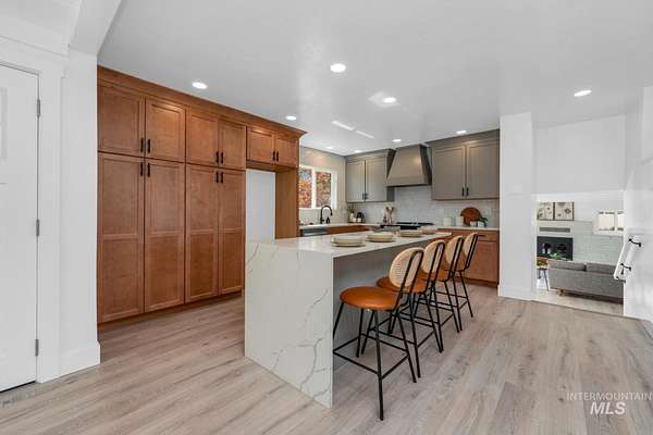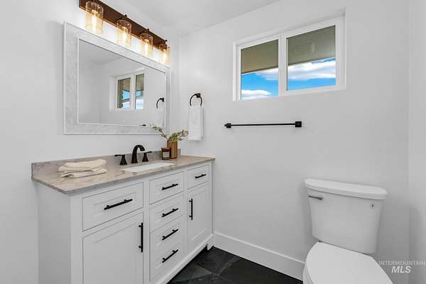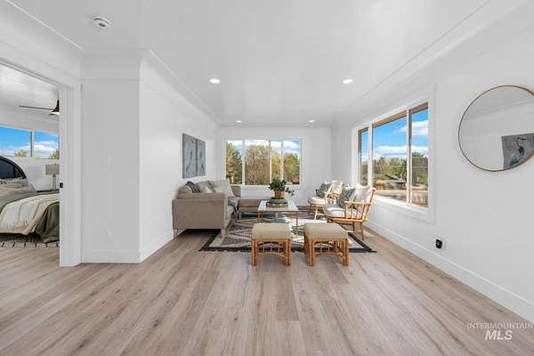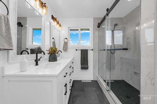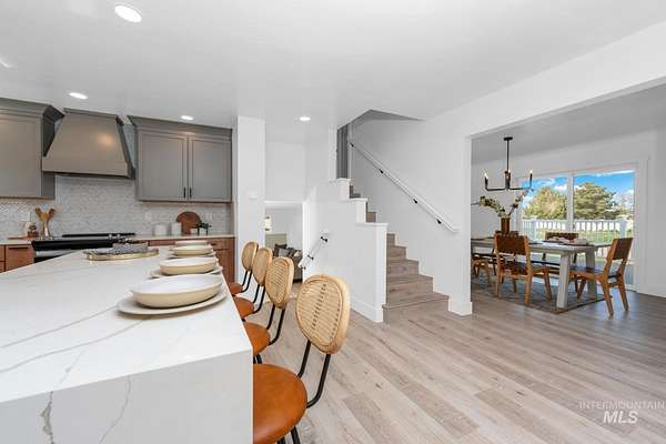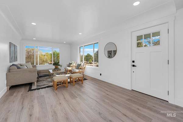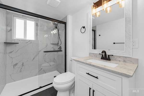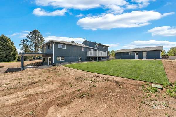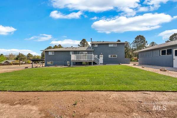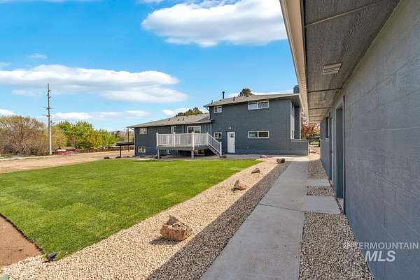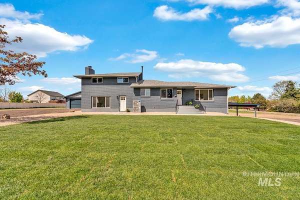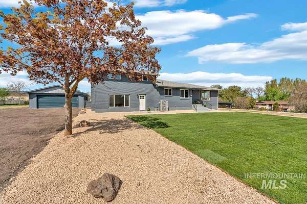 Beautifully remodeled home on nearly 2 irrigated acres in SW Boise, no HOA and connected to city water/sewer with potential for lot split or development (buyer to verify). Main level features kitchen w/ quartz countertops, formal dining, and a master suite w/ walk-in shower & dual vanities. Upstairs has 3 bedrooms and full bath. A few steps down leads to a 2nd living space w/ fireplace, laundry/mudroom, and access to a private-entry in-law suite in the walkout basement w/ its own kitchen, bath, bedroom, and laundry. Detached garage w/ small shop, new sod & sprinklers, RV/horse/toy parking, and plenty of room to build. Great for multi-gen living, rental income, or investment flexibility.