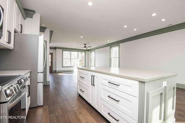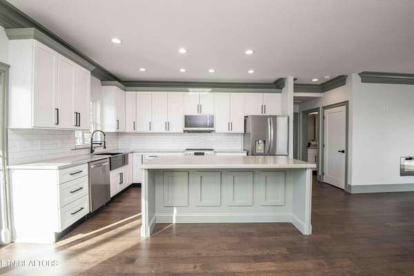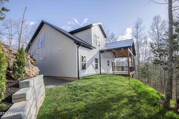 Luxury living with peaceful secluded serenity, all while being just minutes from the heart of Halls. Sitting atop a mountain on 5.22 acres, with stone columns framing the deco concrete drive, this 3 bedroom, 2.5 bath home has2730 sqft of brand new living space. The barndominium craftsman style stone front features wood ceilings covering the porch and open timber frame and post. The solid oak front door leads you to the open floor plan inside. Half in engineered hardwood covers the entire home, along with textures walls and ceilings, and 7 1/4 baseboards. The kitchen features hardwood cabinets with crown and bottom moldings.The farms tyle sink with pot filler sits in the middle of granite counter tops and tiled backsplash. The island is designed with a butcher block top. A pull out spice cabinet, large walk in pantry, undercabinet lighting, and 4 door refrigerator finish this lovely kitchen off. The master bedroom boasts 3 piece accent crown molding, two walk in closets, and dimmable lights. The ensuite feels luxurious with granite counters, dual sinks, custom mirrors, and beautiful walk in shower with rain shower. Up the stairs, following custom iron work, leads to a large loft area with full wet bar. This space is prewired for surround sound and complete with an electric fireplace. Two more oversized bedrooms with large walk in closets with built in chests. The extra bath has two sinks with granite counters and deco mirrors. This brand new house has so many features, you will be in awe as you walk in! Outside, the back patio has wood beam framing, custom iron railings, and beautiful mountain views. Located just 8 minutes from Halls, 20 from downtown Knoxville, and 45 from the Great Smoky Mountains, you are close enough to shopping and eateries, but with the seclusion and privacy you desire. Come check out this brand new custom home today!