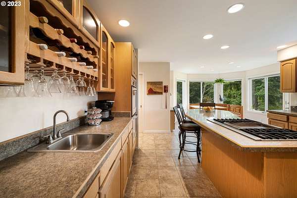 - Appliance Garage, Builtin Oven, Cook Island, Cooktop, Dishwasher, Disposal, Down Draft, Free Standing Refrigerator, Gas Appliances, Island, Pantry, Stainless Steel Appliance, Tile, Trash Compactor