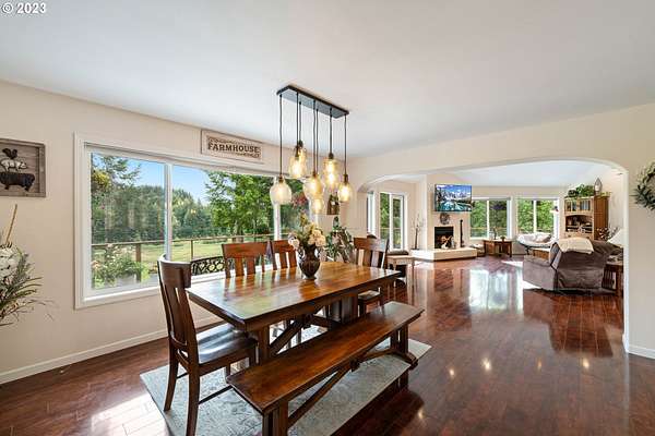 Luxury Country Living on 57+ Acres with Stunning Views & Versatile Amenities!! Welcome to your DREAM COUNTRY RETREAT - just 10 minutes from town! This BEAUTIFULLY CRAFTED 5-BEDROOM, 3.5-BATH CUSTOM HOME offers nearly 4,700 SQUARE FEET of ELEGANT LIVING SPACE set on 57.5 ACRES of ROLLING PASTURE and FORESTED LAND. Soak in BREATHTAKING VALLEY VIEWS from every level of the home, with MULTIPLE DECKS perfect for RELAXING or ENTERTAINING in PEACEFUL PRIVACY. Inside, you'll find VAULTED CEILINGS, a BRIGHT OPEN LAYOUT, and a WELL-APPOINTED KITCHEN designed for both EVERYDAY LIVING and SPECIAL OCCASIONS. The entire upper level is dedicated to the PRIMARY SUITE, featuring a GAS FIREPLACE, PRIVATE DEN, and its own DECK to enjoy the SUNRISE or SUNSET in TOTAL TRANQUILITY. Beyond the home, this property offers IMPRESSIVE VERSATILITY with a 7,200 SQ FT INDOOR ARENA, a 5-STALL BARN, and a 5,000 SQ FT SHOP complete with 14-FT DOORS and a COLD ROOM - ideal for HOBBIES, STORAGE, or AGRICULTURAL USE. There are 20+/- ACRES of CROSS-FENCED PASTURELAND and 37+/- ACRES of DESIGNATED FOREST with RIDING TRAILS, making it a GREAT FIT for HORSE OWNERS or ANYONE who appreciates WIDE-OPEN SPACE and ACCESS TO THE OUTDOORS. Whether you're looking for PRIVACY, ROOM TO ROAM, or simply a SERENE SETTING to call home, this property offers a RARE BLEND of NATURAL BEAUTY and FUNCTIONAL AMENITIES. DON'T MISS THIS ONE - SCHEDULE YOUR PRIVATE SHOWING TODAY, and be sure to WATCH THE VIDEO!