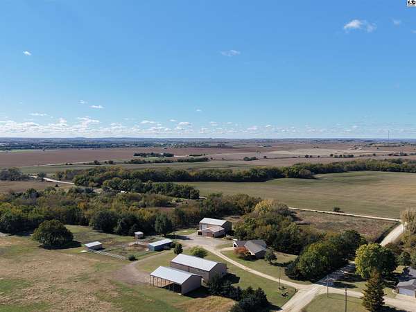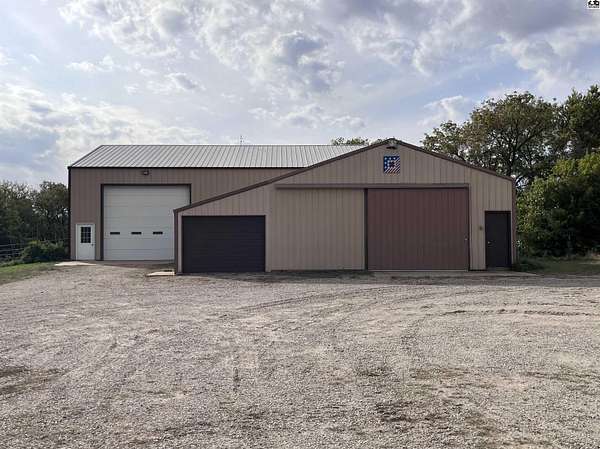 Prepare to be impressed with this country property nestled on 11.2 acres offering a wide variety of uses. The brick ranch style home built in 1985 offers 3 bedrooms, 2 bathrooms, a beautiful family room with vaulted and beamed ceiling and an attached 2 car garage. The homestead features multi-use connected 46x43 & 40x30 shops which offers functional and ample work or storage space. The building(s) have concrete floors, a large overhead drive-thru door, and an additional parking space with garage door opener. Next on the list of impressive outbuildings is the rustic 2,100 square foot fully self-contained living quarters. Let your visions run wild with what you can do with 2 bedrooms, 2 full bathrooms, full kitchen, laundry hook-ups, and several entertaining areas in a picturesque location. No expense spared or detail overlooked in this building! Photos don't do this space justice so please call for a showing. Many uses in mind for the open 45x42 machine/hay shed a few steps from the living quarters. Rounding out this property is a 14x40 open barn and 2 loafing sheds ready for all your livestock with pipe-fenced pens, and a fenced pasture complete with an electric livestock waterer. Mulberry Creek provides the beautiful trees that wind thru the property and add to the tranquil setting. Explore the potential of this unique rural property today just miles outside of Salina, KS. An additional 53 +/- acres of adjacent farm ground (to the east) available for $200,000.
