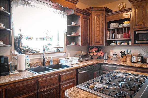 - Dishwasher, Disposal, Electric Oven, Electric Range, Gas Cooktop, Microwave, Range Hood, Refrigerator