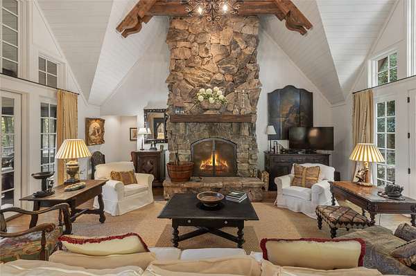 Welcome to an exceptional residence in the Wade Hampton Golf Club. As you first approach, this distinguished residence conveys a sense of quiet sophistication. With its timeless architecture, hand-laid stonework, and custom-crafted wood and glass entry door, the home establishes a warm and inviting presence from the moment you arrive. Inside, the two-story great room creates an immediate impression of grandeur and comfort. A soaring stone fireplace anchors the space, while walls of glass frame the long-range mountain views perfectly. The natural light accentuates the craftsmanship and architectural details that define the home, creating a welcoming environment that is elegant without pretension. Outdoor living is seamlessly integrated into the design. The covered porch, complete with a second stone fireplace, offers an ideal setting to gather with friends and family - whether recounting the day's victories on the golf course or sharing the tranquility of a Plateau evening. A stone terrace and private garden provide additional intimate outdoor retreats, blending seamlessly with the surrounding landscape. The kitchen and dining areas are equally inspiring, with generous windows that embrace the majestic views. These spaces strike a balance between function and elegance, making them ideally suited for both casual dining and entertaining. On the main level, the primary suite offers a private retreat. Featuring its own fireplace, a spa-inspired bath with marble finishes, and vistas overlooking both the mountains and the home's secluded garden, this suite is a sanctuary within the residence. The upper level is designed with guests in mind, offering two spacious suites that carry forward the light and refined aesthetic found throughout the home. Each space is thoughtfully appointed, ensuring comfort and privacy for family and visitors alike. This elegantly decorated home is being offered fully furnished, allowing for immediate occupancy and effortless enjoyment from the very first day. Situated within Wade Hampton Golf Club - consistently recognized among the finest private clubs in the nation - this residence combines architectural artistry, natural beauty, and a lifestyle of distinction. Membership is by invitation only. For those seeking a refined retreat in one of the Plateau's most esteemed communities, this home represents a rare opportunity. It is more than a residence - it is a sanctuary of elegance and comfort.