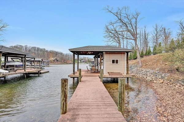 Breathe deep and know that you finally found the one. This sensational waterfront lot at Smith Mountain Lake offers the perfect blend of relaxation and recreation, Deep water and expansive, long-water views. Start your mornings with coffee as the sunrise hits the water, then head down to your private dock--complete with bar, a dedicated entertainment area, and a floater--designed for hosting. Located in a serene, private community, the property sits on a huge, quiet cove ideal for swimming, kayaking, or canoeing. The shoreline is already protected with rip-rap, and the lot is served by a 50/50 shared well. Please note that an adjacent septic drainfield is located on the property, with maintenance responsibilities held by the neighbor. No HOA.