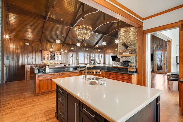- Beamed Ceilings, Bookcases, Breakfast Bar, Built In Features, Cathedral Ceilings, Cedar Closets, Ceiling Fans, Central Vacuum, Chandelier, Double Vanity, Entrance Foyer, High Ceilings, High Speed Internet, His And Hers Closets, In Law Floorplan, Jetted Tub, Kitchen Island, Multiple Closets, Primary Downstairs, Separate Formal Dining Room, Wet Bar