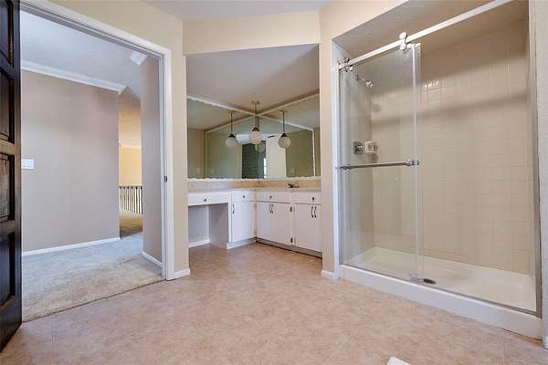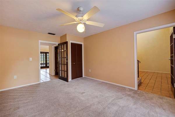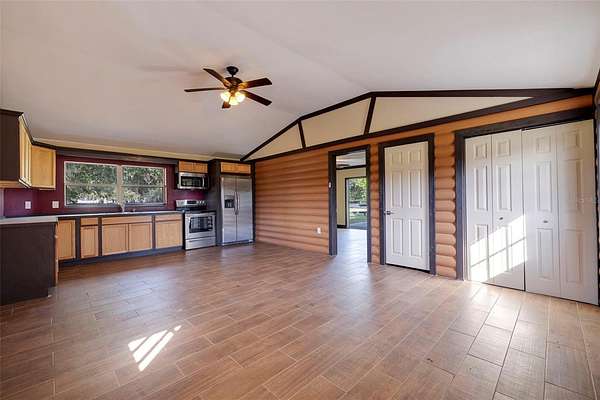 - Ceiling Fans(s), Eat-In Kitchen, Kitchen/Family Room Combo, Open Floorplan, Primary Bedroom Upstairs, Solid Wood Cabinets, Split Bedroom, Stone Counters, Thermostat, Walk-In Closet(s)