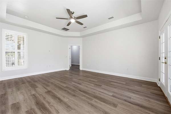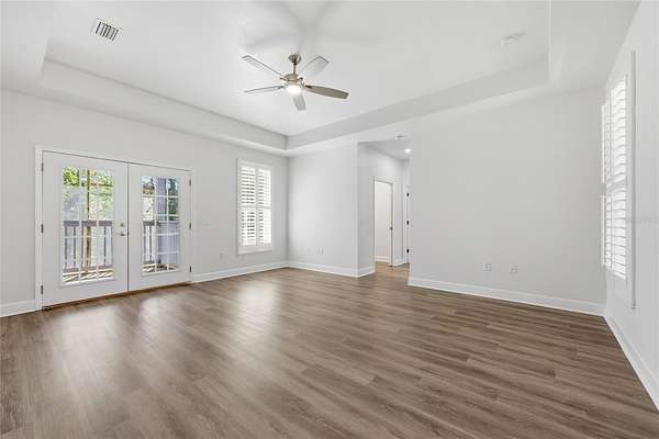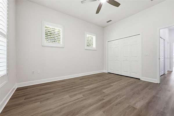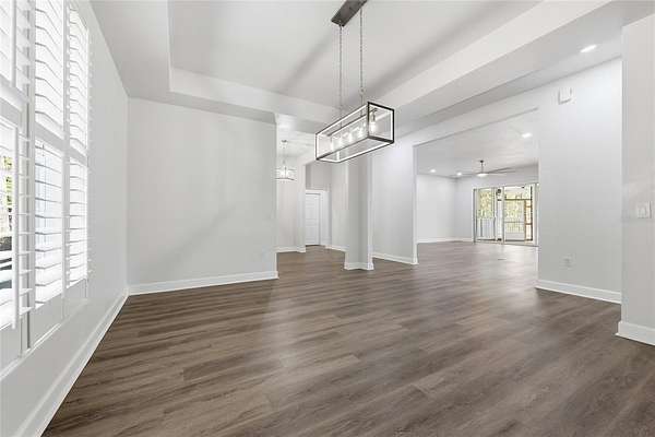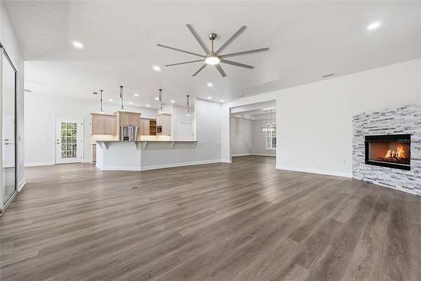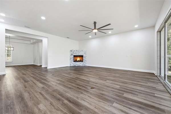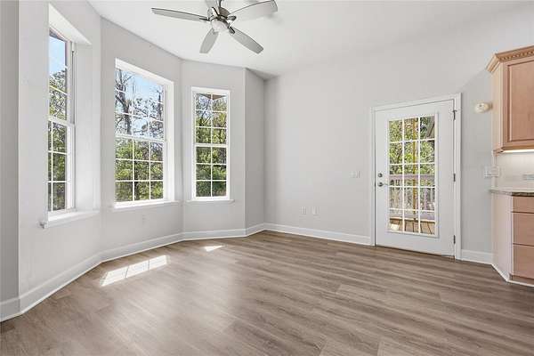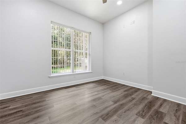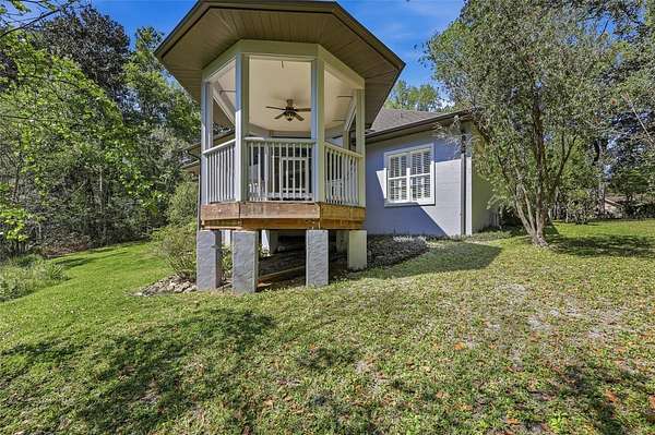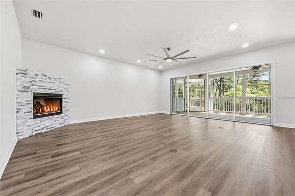 Privacy, water views, and room to enjoy the outdoors define this beautifully updated single-story estate located at the end of a quiet cul-de-sac in the highly desirable community of The Hammock in Northwest Gainesville. Offering 3,013 square feet of living space on 2.27 acres just off scenic Millhopper Road, the property combines peaceful surroundings with convenient access to the University of Florida and UF Health Shands Hospital, approximately 23 minutes away. Mature trees frame the home, which is positioned to capture tranquil views of a private lake and visiting wildlife. Inside, fresh interior paint, updated lighting, and new LVP and tile flooring create a clean, modern feel throughout. The practical split floor plan includes three bedrooms plus a dedicated home office, with two bedrooms able to close off behind a pocket door to create a private wing. The main living area features a gas fireplace and large doors that fully collapse open, seamlessly connecting the living room to an expansive screened deck overlooking the water. The kitchen offers excellent storage with a large walk-in pantry, while the oversized laundry room with sink adds everyday convenience. The primary suite includes two walk-in closets and peaceful views of the surrounding property. Additional highlights include a three-car garage with stairs leading to unfinished storage above, a covered breezeway connecting the garage to the home, and a spacious screened deck designed to enjoy the natural setting. Located near Devil’s Millhopper Geological State Park and San Felasco Preserve State Park, this property offers a rare opportunity to own acreage, privacy, and lakefront scenery in one of Gainesville’s most scenic areas.
