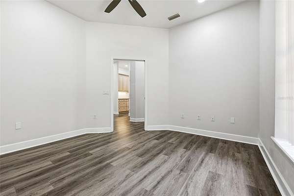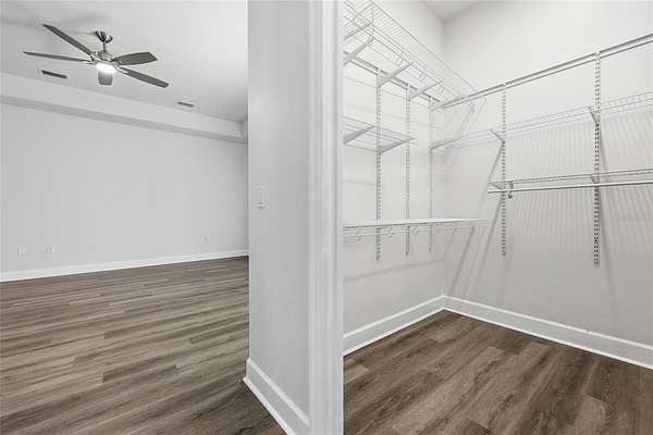 - Ceiling Fans(s), Eat-In Kitchen, High Ceilings, L Dining, Open Floorplan, Primary Bedroom Main Floor, Solid Surface Counters, Solid Wood Cabinets, Split Bedroom, Thermostat, Walk-In Closet(s), Window Treatments