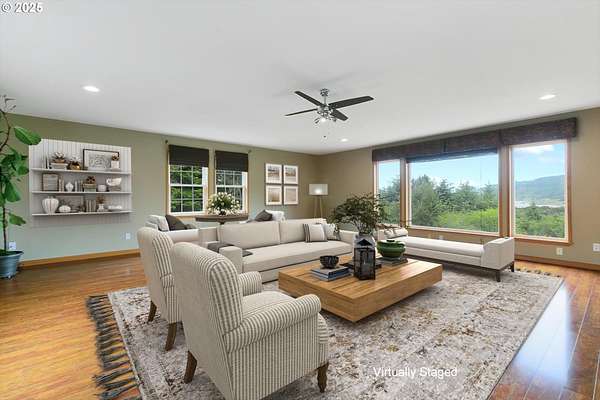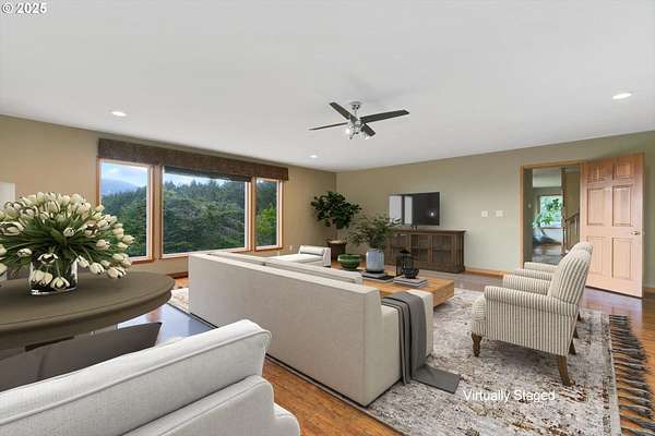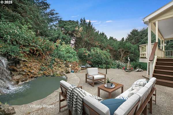 Stunning Ocean Views & Versatile Layout on 1.55 Acres.Enjoy breathtaking ocean and mountain views from this custom-built home situated on 1.55 usable acres. With 3 bedrooms and 3.5 bathrooms on the main and upper levels, plus a separate 1BR/1BA guest quarters on the lower level with its own private entrance, this home offers flexibility for extended family, guests, or potential rental use. Upstairs, most bedrooms capture sweeping views, including the spacious Primary Suite, which features a walk-in closet, dual bathrooms (his and hers), and a bonus room-ideal for a home gym, studio, office, or private retreat. Designed for both comfort and entertaining, the home includes a formal dining room, casual dining area, living room, and a separate great room-perfect for gatherings or multi-generational living. The kitchen is equipped with newer appliances and thoughtful touches like roll-out drawers for added convenience. Step outside to enjoy the best of coastal living with three separate decks, including a large, detached deck with water and power-great for outdoor dining, relaxing, or even future hot tub placement. The fully fenced yard is perfect for pets and showcases a charming waterfall fountain and vibrant flowering plants on one side, with panoramic ocean and mountain vistas on the other. All this, offered at one of the lowest price-per-square-foot values in the area. Call your agent today for a private tour!
