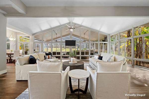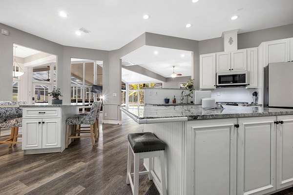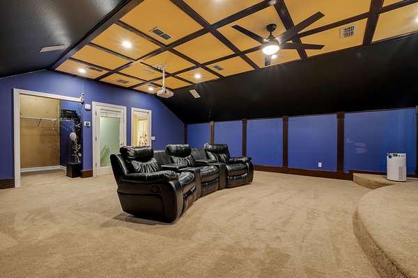 One or more photos have been virtually staged. Discover the rare combination of grand-scale living, privacy, and resort-style amenities in this spacious home in Chemonie Crossing. Thoughtful design and high-end finishes define the interior, highlighted by a double-island eat-in kitchen that serves as the heart of the home with abundant prep and gathering space. Multiple living and dining areas offer flexibility for everyday living and entertaining, and a dedicated home theater is perfect for movie nights. A detached two-car garage-with a guest suite above-joins the attached three-car garage for a total of five garage spaces, providing exceptional storage and parking flexibility. The luxurious primary suite lives like its own private wing, featuring an oversized walk-in closet, an octagonal sitting room, and an additional en-suite room ideal for an office, nursery, fitness space, or extra bedroom. The lanai overlooks the custom pool and hot-tub spa and includes a fully equipped outdoor kitchen for year-round al fresco living. Beyond the pool, a full Sport Court accommodates basketball, pickleball, and more-creating a private recreation retreat. The carriage-house apartment over the detached garage is ideal for multigenerational living, long-term guests, a private office, or potential rental income. A whole-home Generac generator adds peace of mind. This exceptional property, an incredible value priced at less than $200 per square foot, offers unmatched flexibility, comfort, and amenities-an entertainer's paradise and a rare opportunity in Chemonie Crossing. Flexible floor plan: 3 to 6 bedrooms depending on needs-primary suite, two secondary bedrooms, flex room with bath, upstairs bonus/theater room with bath, and guest suite over garage.