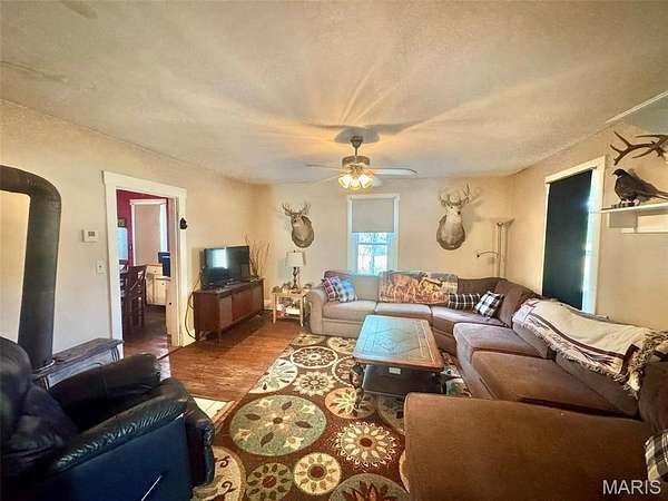 15-acre getaway with endless potential! This 3-bedroom home offers two spacious living rooms and a rustic hunting cabin theme. The home features a real wood stove for cozy nights, plus a propane-fueled furnace for reliable heat when you need it. The acreage includes two fields, one that is currents cash rented and another that can be. Mature tree cover and open trails complete the remainder of the property, making it a haven for nature enthusiasts and deer hunters alike (plentiful tracks can be found throughout!). The home is fully livable but could use some TLC to truly make it shine. Most furniture and current home personal belongings are negotiable, so if you see something you like, just ask!