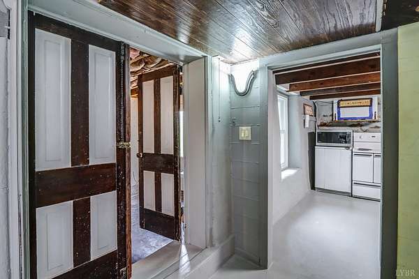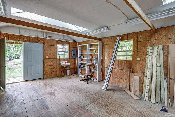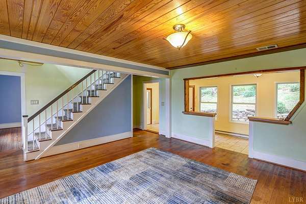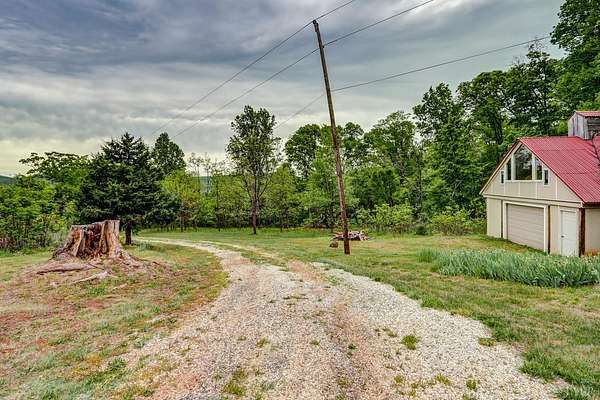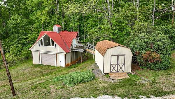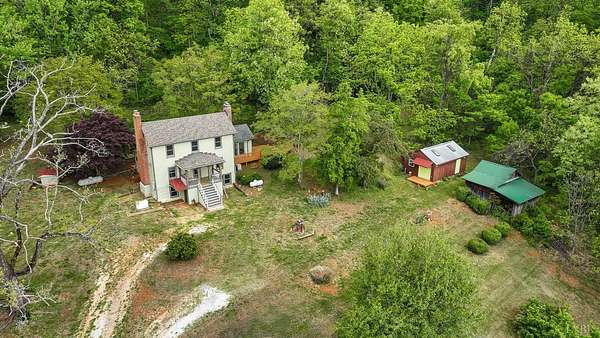 Private mountain retreat on 87.60 acres in Nelson County, just minutes from Lovingston. Originally built in 1872, this character-filled two-story home with basement offers approx. 1,972 square finished feet, 3 bedrooms, and 1.5 baths. Spacious living room and sunroom capture the surrounding mountain views. English-style kitchen with appliances conveying opens to a generous dining area. Two gas log fireplaces add warmth and charm. Generac whole-house generator and two large propane tanks convey. Outdoor spaces include a covered front porch and expansive side deck, ideal for relaxing or entertaining. 21x23 drive-through garage with loft plus three storage sheds. A portion of the property is subject to an open space conservation easement.