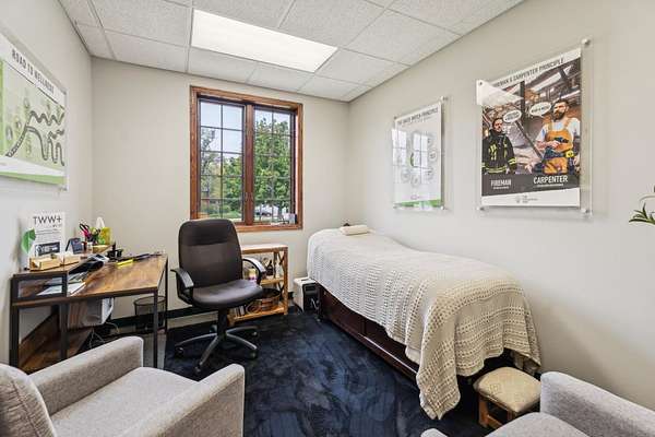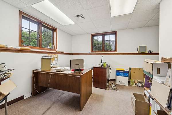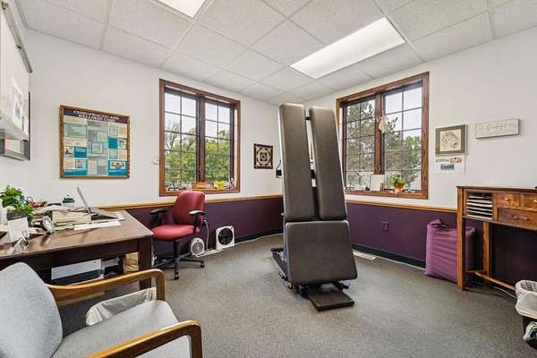 This well-maintained commercial property offers over 10,000 sq ft of flexible office space on 1.8 acres. Conveniently located at the intersection of Park Ave and Pioneer Rd, it benefits from high visibility, strong traffic flow, easy access & generous parking both clients and employees. Partially leased by long-standing tenant Dynamic Chiropractic, who is open to a long-term lease at current market rates. The east wing is available immediately and features private offices, meeting spaces, two separate entrances, and a welcoming lobby with vaulted ceilings and a fireplace. Space features exam rooms, administrative areas & +/-1800 sq ft lower level for storage or future use. Lease rate $12/sq ft NNN.