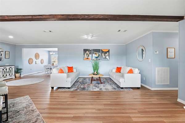 Additional highlights include a large laundry room with ample storage and a bonus storage room, two living areas, a dedicated dining space, and both front and back porches--perfect for enjoying the peaceful surroundings.