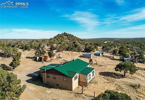 This incredibly beautiful and unique Colorado mountain ranch setting offers stunning views of the Spanish Peaks and Greenhorn Mountain, set in complete seclusion on approximately 83 acres. Designed as the ideal homesteading retreat, the property provides privacy, space, and the infrastructure needed for self-sufficient living. Enjoy expansive mountain views throughout the home, with walk-out access to a front deck and a rear porch perfect for taking in the peaceful surroundings. The property includes everything needed to operate a working homestead, including a well, septic system, electricity, an owned propane tank, outbuildings, and fencing. It has previously supported cattle, hogs, goats, chickens, and horses, making it well-suited for livestock or agricultural use. The home is sold as-is and priced accordingly, with the roof, water heater, furnace, and plumbing all in working condition and replaced in the last 5 years. Multiple heating sources ensure comfort year-round, including a pellet fireplace in the living room and a pellet stove in the basement for cozy winter days. A large covered southern porch has been converted into a warm and inviting family room, perfect for relaxing by the fire while enjoying snowy mountain views. The main level also features four bedrooms, a bathroom, and a laundry room. A large kitchen area is waiting for your finishing touches. Despite the privacy, the property is just 15 minutes from the quaint town of Walsenburg for shopping and supplies. Nearby recreation includes Lathrop State Park with two lakes for boating, fishing, and paddling, the Pike-San Isabel National Forest for hiking and camping, and Cuchara Mountain Park for skiing. La Veta, Pueblo, and Trinidad are all within an easy drive. This rare homesteading ranch at the perfect price to make it fit all your needs. Breathtaking scenery, privacy, and the freedom to live sustainably in the Colorado mountains.