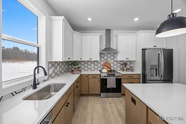 Welcome to the Sycamore plan by JTB Homes in the Caledonia School District! This stunning home sits on over 3 acres and offers over 2,500 sq. ft. of living space, a 3-stall garage, and 4 spacious bedrooms. The main-floor primary suite features cathedral ceilings, a walk-in closet, and ceramic tile shower. Enjoy evenings by the electric fireplace in the living room. The kitchen is a dream with a center island, vented range hood, and wood toe kick detail. A convenient main-floor laundry room and 1.5 baths complete the first level. Upstairs, you'll find 3 additional bedrooms and a full bath. Outside is a 16'x12' covered daylight deck- perfect for relaxing or entertaining. Don't miss your chance to see this home. Buyer(s) eligible for rate lock offered by seller. See documents for more details. Must be a full price offer.