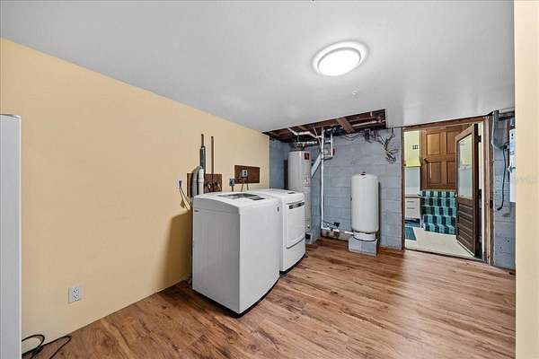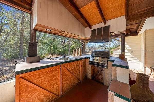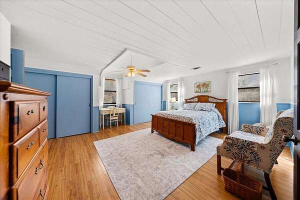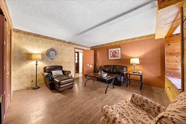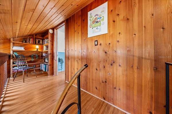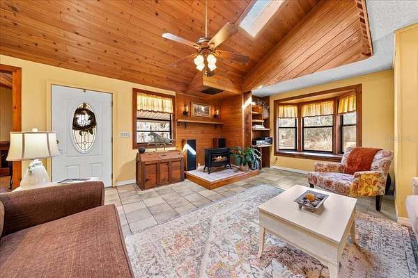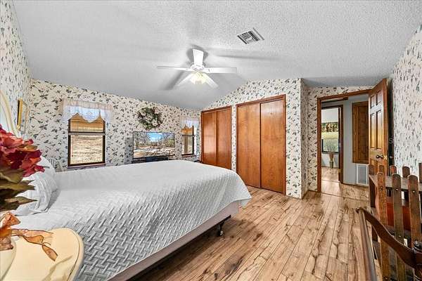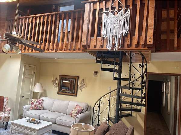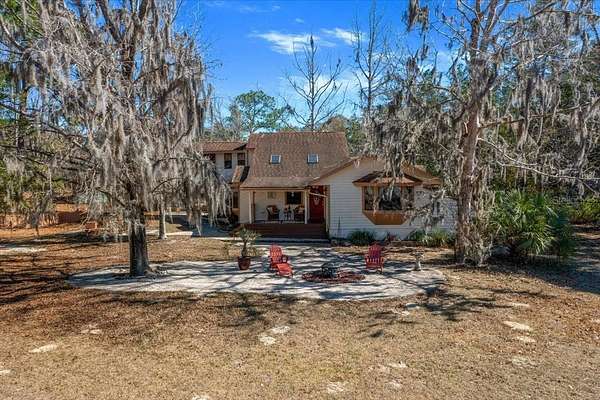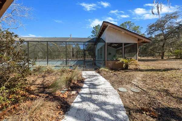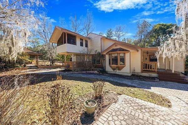 You will simply fall In love with the old Farm like feel of this 1856 Square foot home with 4 bedrooms and 2 bathrooms. The primary bedroom is fabulously located up in the loft area. Open entry loft area then a 18X16 Primary bedroom with en suite bath and screened balcony. 3 more bedrooms and one more bathroom makes this perfect for any buyer including a multi family or large family. Current owner is using one bedroom as an office and one bedroom as a family room. Potential for so many ideas. Home has a fabulous Dining room and Living room off the quaint kitchen. Kitchen has an opening to the dining room as well. Enjoy an oversized 38X21 screened porch with out door kitchen. Very private and quiet. This home has a downstairs 15X13 unfinished utility area for the washer/dryer and workable area. Off this is an Unfinished storage room and also an unfinished hall area that leads to the outside. This adds quite a bit of storage area to the home. Enjoy the separate cabana area and screened in in-ground swimming pool surrounded by nature.