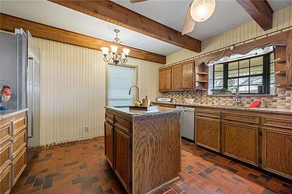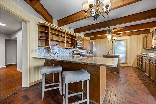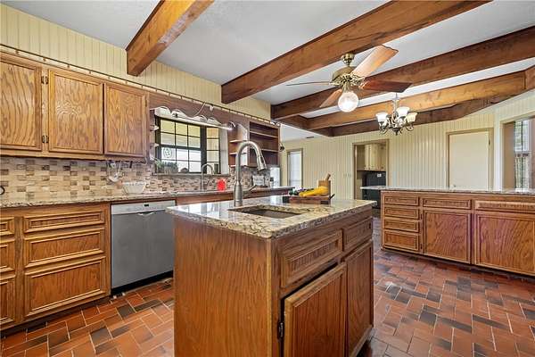- Breakfast Bar, Ceiling Fans, Home Office, Kitchen Island, Primary Downstairs, Window Treatments