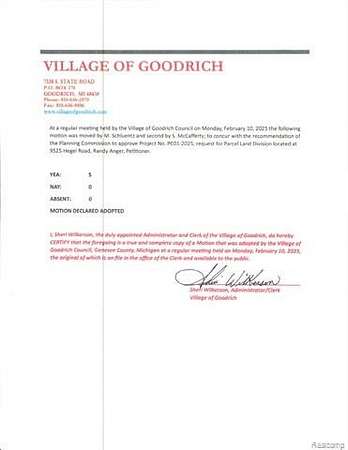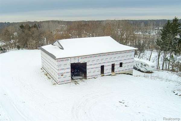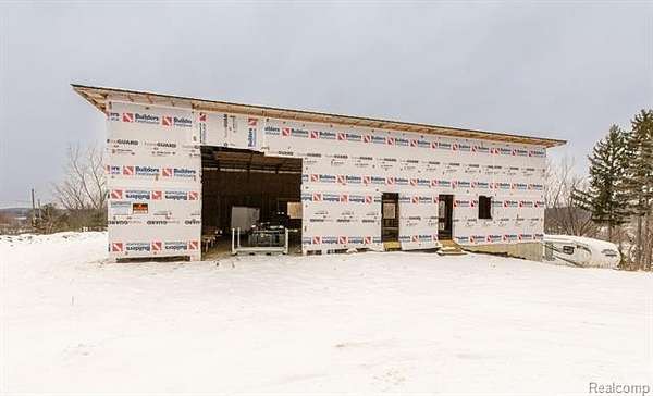 Distinct New-Construction low maintenence Barndominium is looking for an INVESTOR. NEW PRICE reflects Master Builder is continuing to build the home -- Home in progress INVESTOR participation can buy-out/partner w/Master Builder who is negotiable. Proposed plans: 2-Story living boasts 3400sf, w/converible/flexible lower level that can be designed for 1500sf, 12ft ceilings, multi-car garage OR finished living space. Property hosts outstanding vistas just a minute from Goodrich Country Club Golf Course. Purchase now & be in time for all the finishes, including designing the modern main floor plan as this home has an open concept design with extraordinary flexibility. This home was planned for owners who need serious custom vehicle storage/design OR other home business needs: large capacity storage/studio/e-commerce goods/landscaping or recreational equipment, a half-pipe or basketball court, to name a few. Main level boasts hydronix heated concrete flooring, that provides flexibility of design and maintenance. The attached garage has a 12x14 door that takes you into a 2-Story open ceiling space for maxium use. Expansive window placement provides maxium light exposure. 2nd Story holds 2 bedrooms/loft, 2 full baths, 2nd Laundry, and elevator for all 3-levels is optional. LL plumbed for bath and kitchenette and/or full garage as mentioned. Walk to The Village of Goodrich, for small-town conveniences & recreational options. Residents enjoy downtown shopping & dining, community parks, walking & biking trails, a public library, regualr village events and easy access to Goodrich Schools down the street. Whether you want a weekend retreat or a full-time family home, this property gives you country-club proximity plus village lifestyle amenities. Master Builder is the seller, and is ready to partner with an investor bringing this home to life! Exterior pic is simulated. Barndominium construction is lower costs to maintain. Be in you new home early 2026! Hurry!