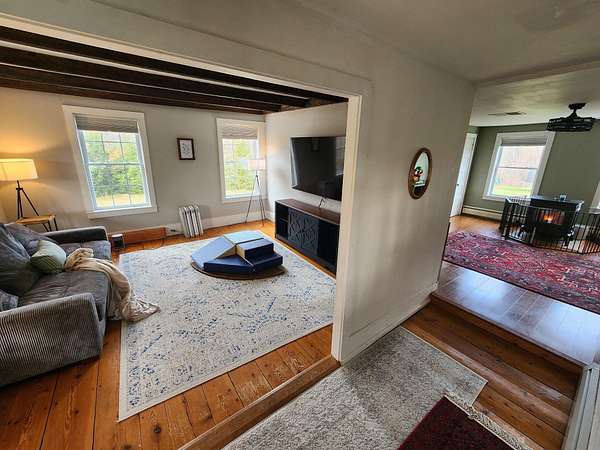 Set on more than 12 acres in a quiet country setting, this classic 1880s farmhouse offers over 2,000 square feet of living space with a balance of Adirondack charm and meaningful updates. A new metal roof with owned solar panels, freshly painted exterior, and wrap-around covered porch reflect the care and investment this home has received. Inside, bay windows in the kitchen and primary bedroom bring in beautiful natural light, while fiber internet and reliable cell service make remote work easy and practical. A detached three-bay garage with electricity and loft storage adds excellent utility, and a new back door was installed in 2024. The property includes a fire pit, open space to enjoy, and a growing orchard with newly planted apple, pear, blackberry, raspberry, and blueberry plants. Several useful personal property items may also convey, including newer kitchen appliances and select equipment. Conveniently located just two miles from Interstate 87, with easy access to Wadhams, Elizabethtown, and the Westport boat launch on Lake Champlain, plus an easy drive to Lake Placid and Plattsburgh. The acreage may offer future subdivision potential, with the possibility of creating up to two additional lots, subject to town approvals.