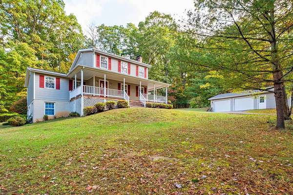 Est $2,539/moTucked away on 3.28 private acres, this charming 4-bedroom, 3.5-bath home blends comfort and country living in the heart of the Shenandoah Valley. Enjoy over 2,000 sq ft of living space plus a walk-out basement, ideal for a recreation room, guest suite, or extra storage. Built in 1995, the home features a welcoming wraparound front porch, detached garage, and cozy fireplace/wood stove-perfect for cool mountain evenings. Bright interiors, warm details, and inviting spaces make it easy to relax and entertain. Surrounded by mature trees and open yard space, this property offers the peace and privacy of a true country retreat-spacious, serene, and just minutes from town.